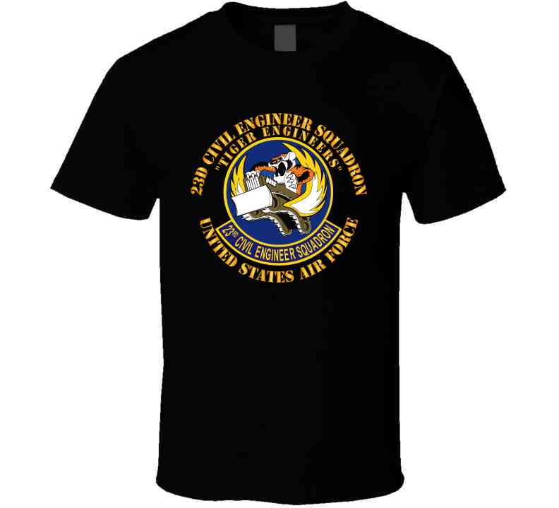 USAF - 23d Civil Engineer Squadron - Tiger Engineers T Shirt, Various, Classic, Black