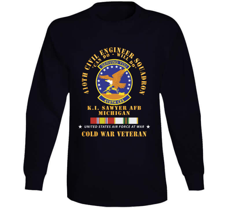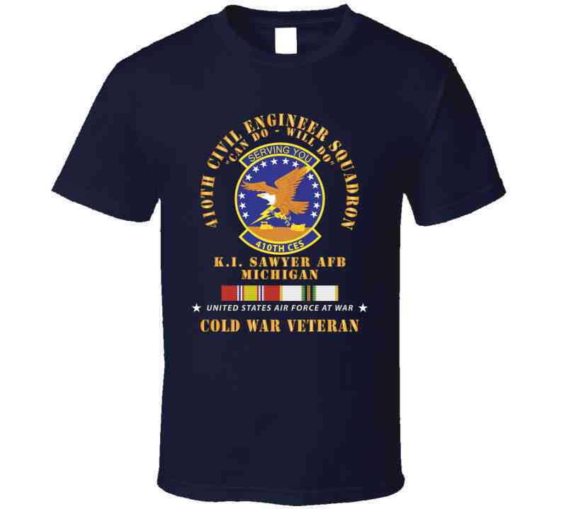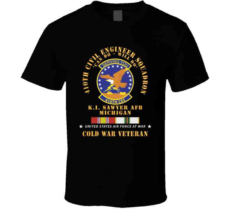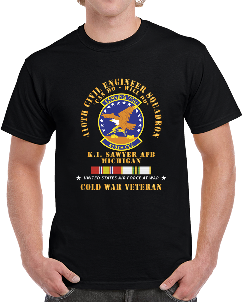 USAF - 410th Civil Engineer Squadron - Can Do - Will Do - KI Sawyer AFB, MI Cold War Veteran COLD SVC X 300 T Shirt, Various, Classic, Black