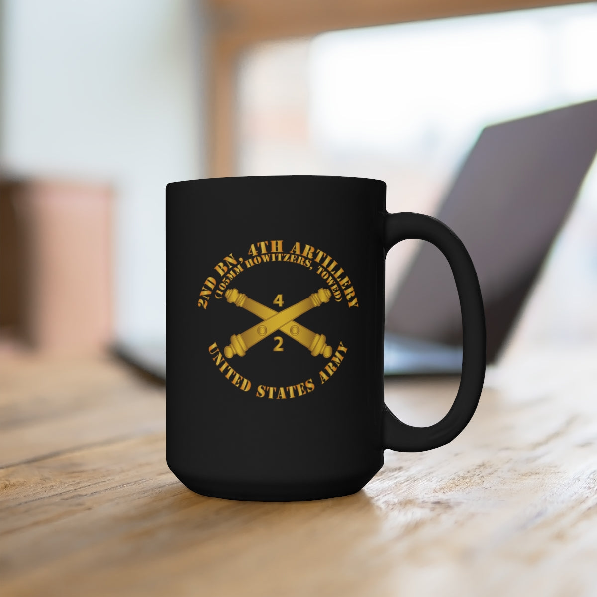 Black Mug 15oz - Army - 2nd Bn 4th Field Artillery Regt - 105mm w Arty Br