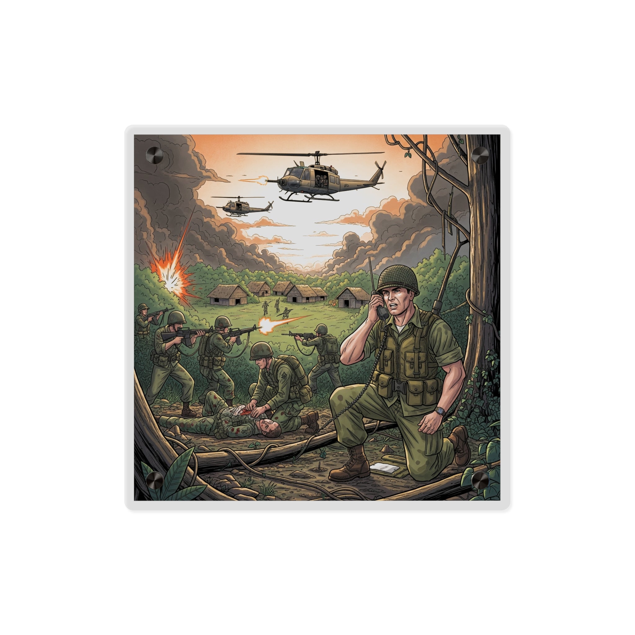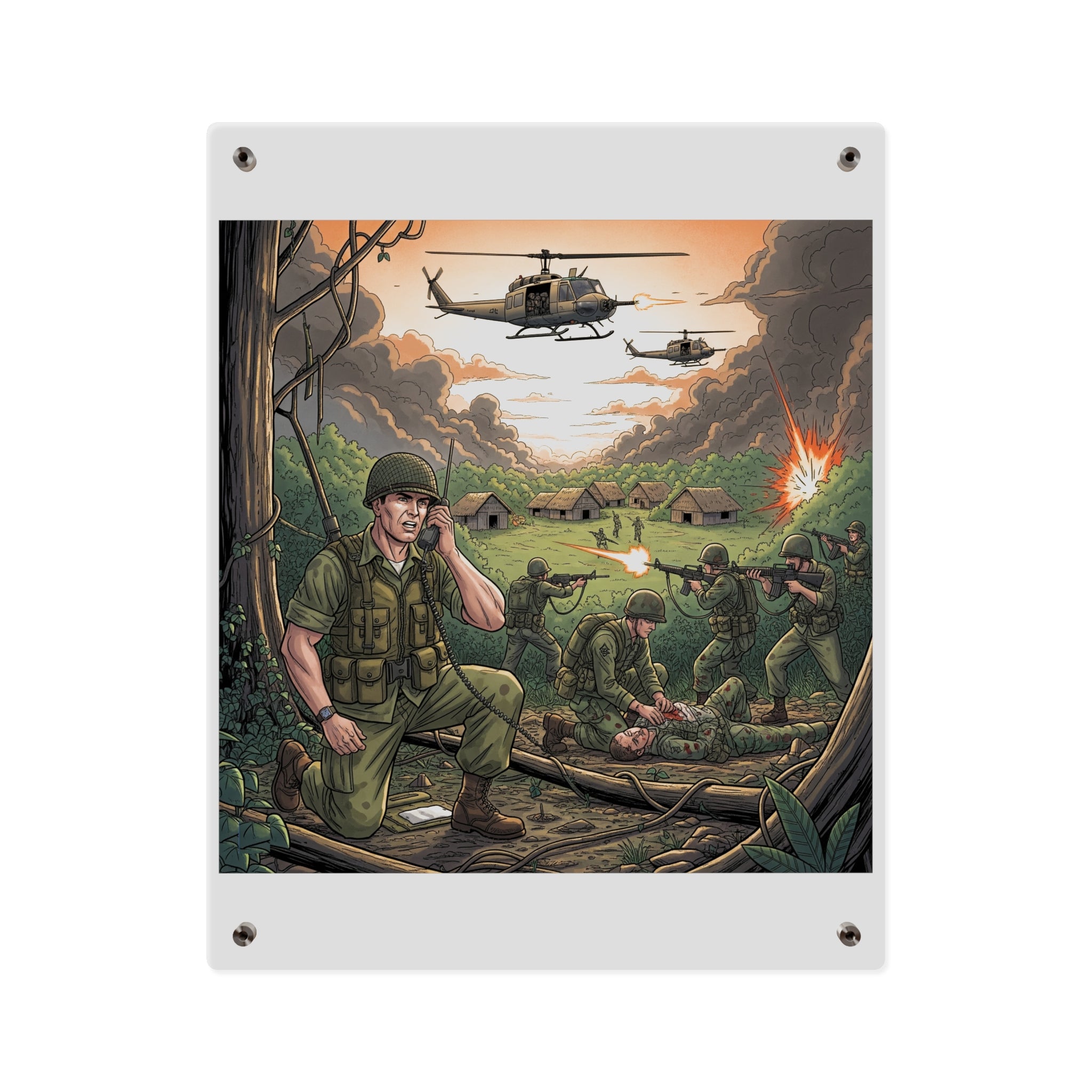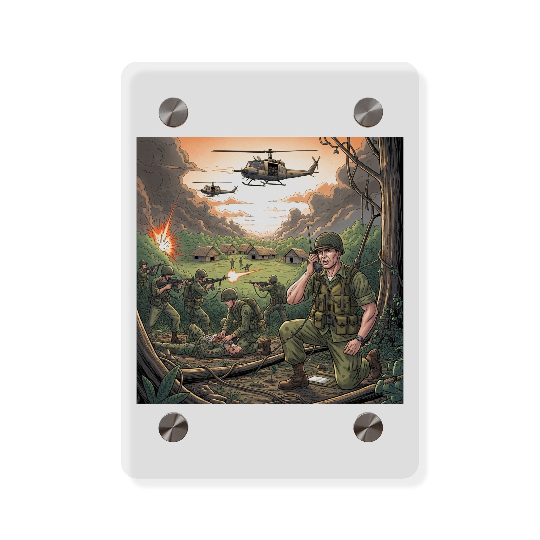 Acrylic Wall Art Panel - Vietnam Patrol Fire Fight Requesting Medevac