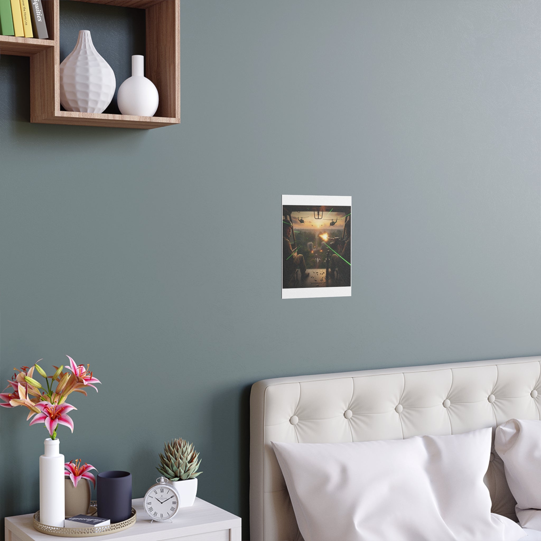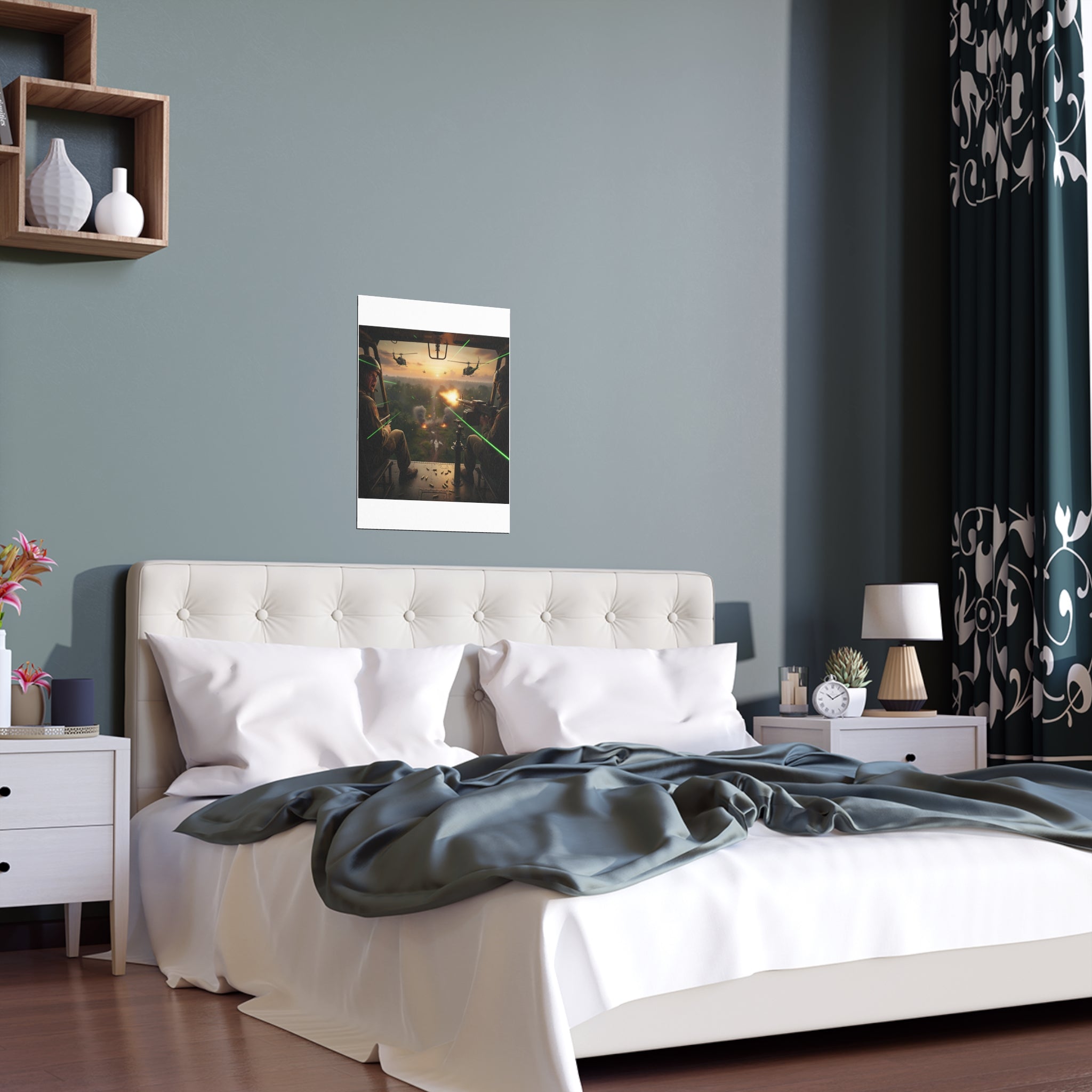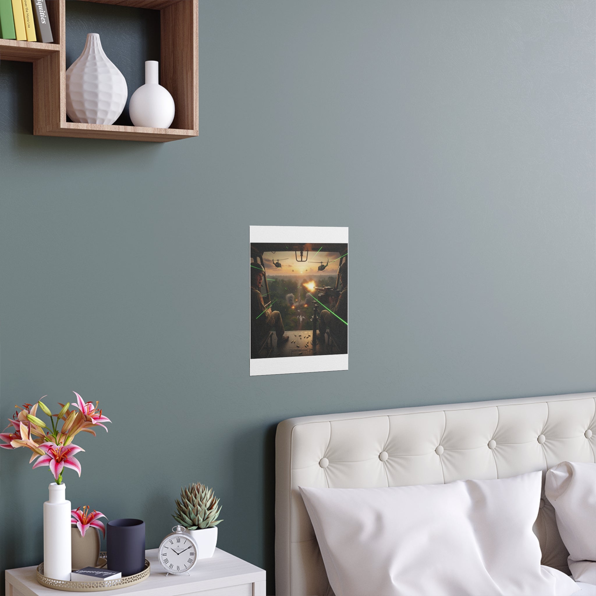 This silk-finish poster brings action and atmosphere into any room. A military helicopter hovers above a misty, tree-lined landscape — the image is crisp, color-rich and full of motion. The semi-gloss 200 gsm paper gives each print depth and a subtle sheen that keeps colors alive without glare. Waterproof and scratch-resistant, the poster stands up to damp outdoor porches as easily as it does a living room gallery wall. Choose from multiple sizes and orientations to suit a compact bedroom, a study wall, or an outdoor nook that needs a bold focal point. The result is a durable, high-impact print that feels lived-in and adventurous rather than fragile.