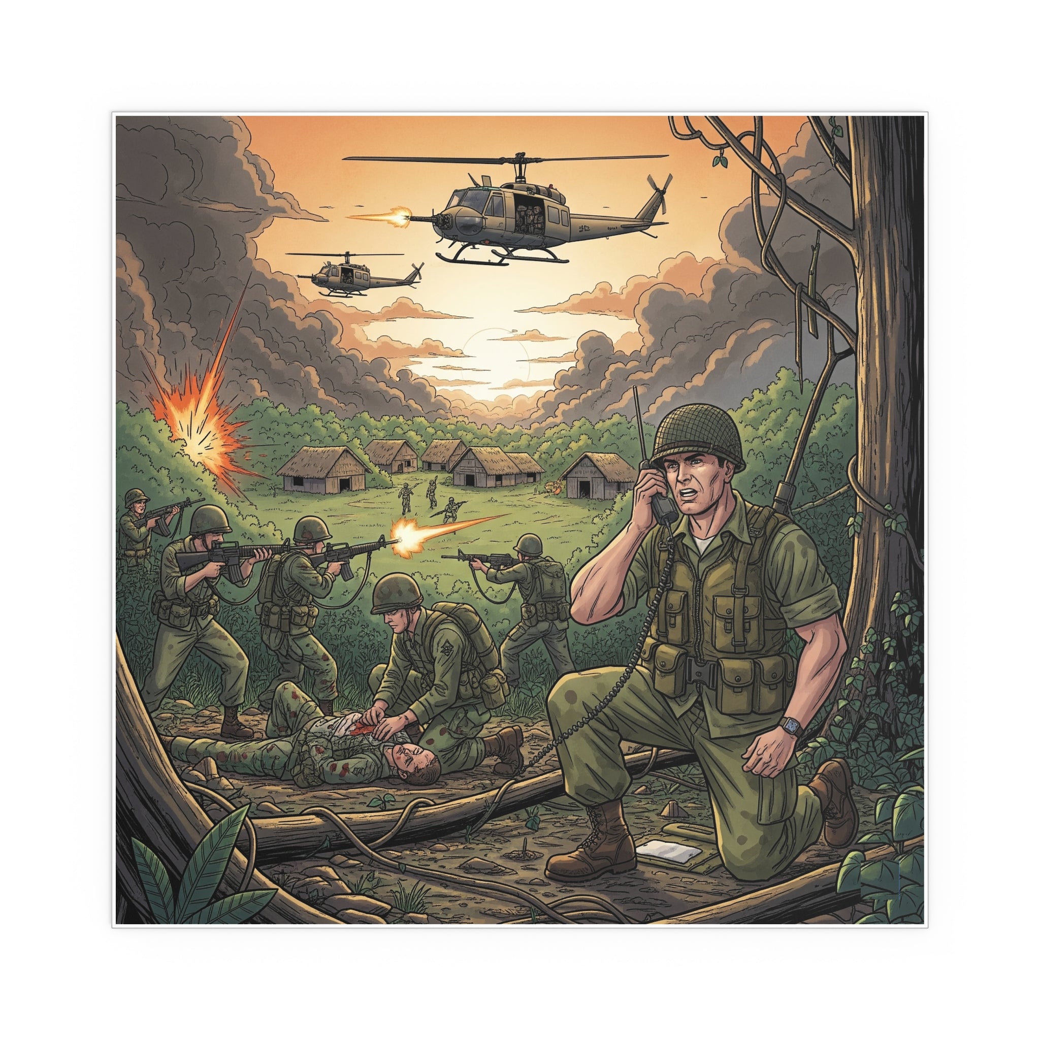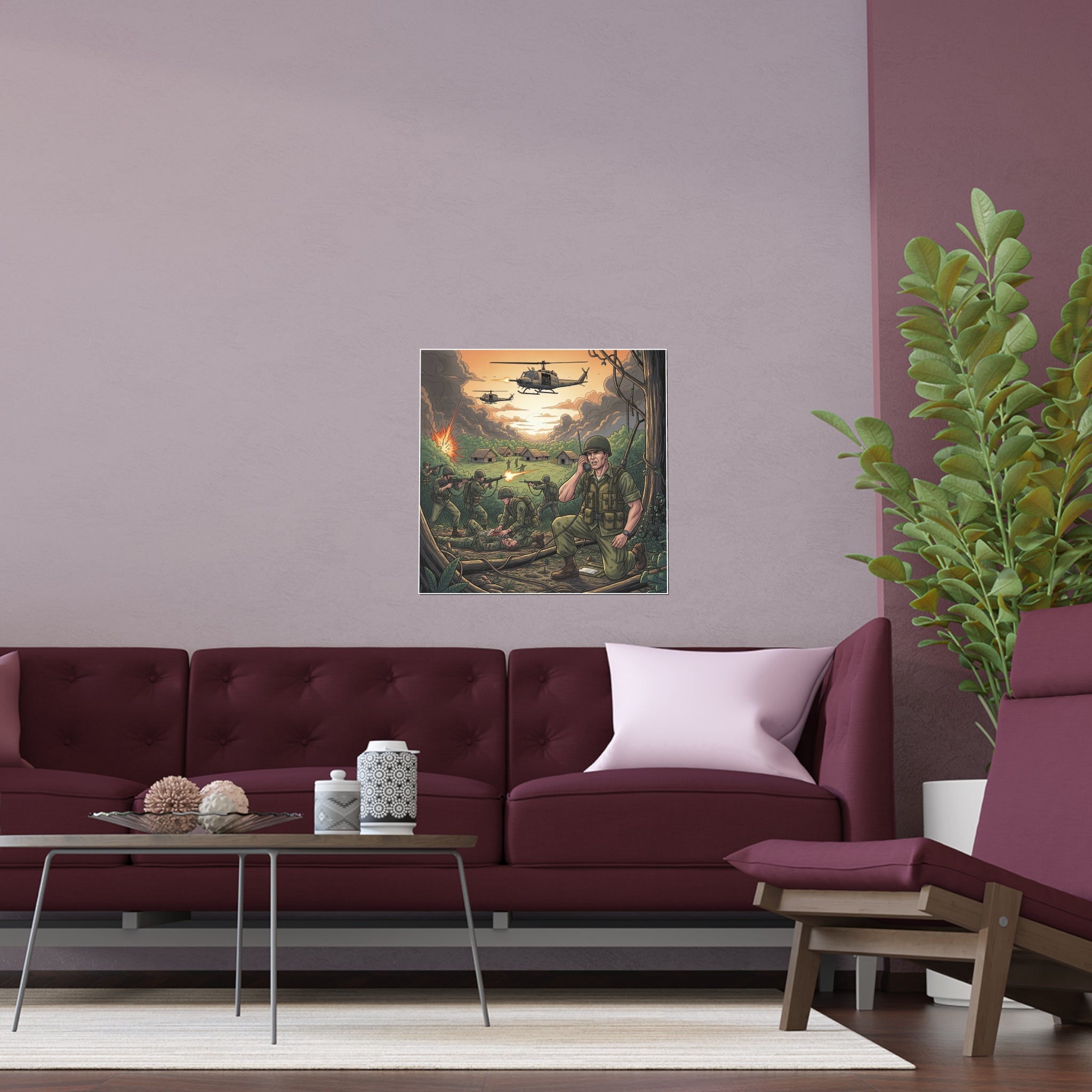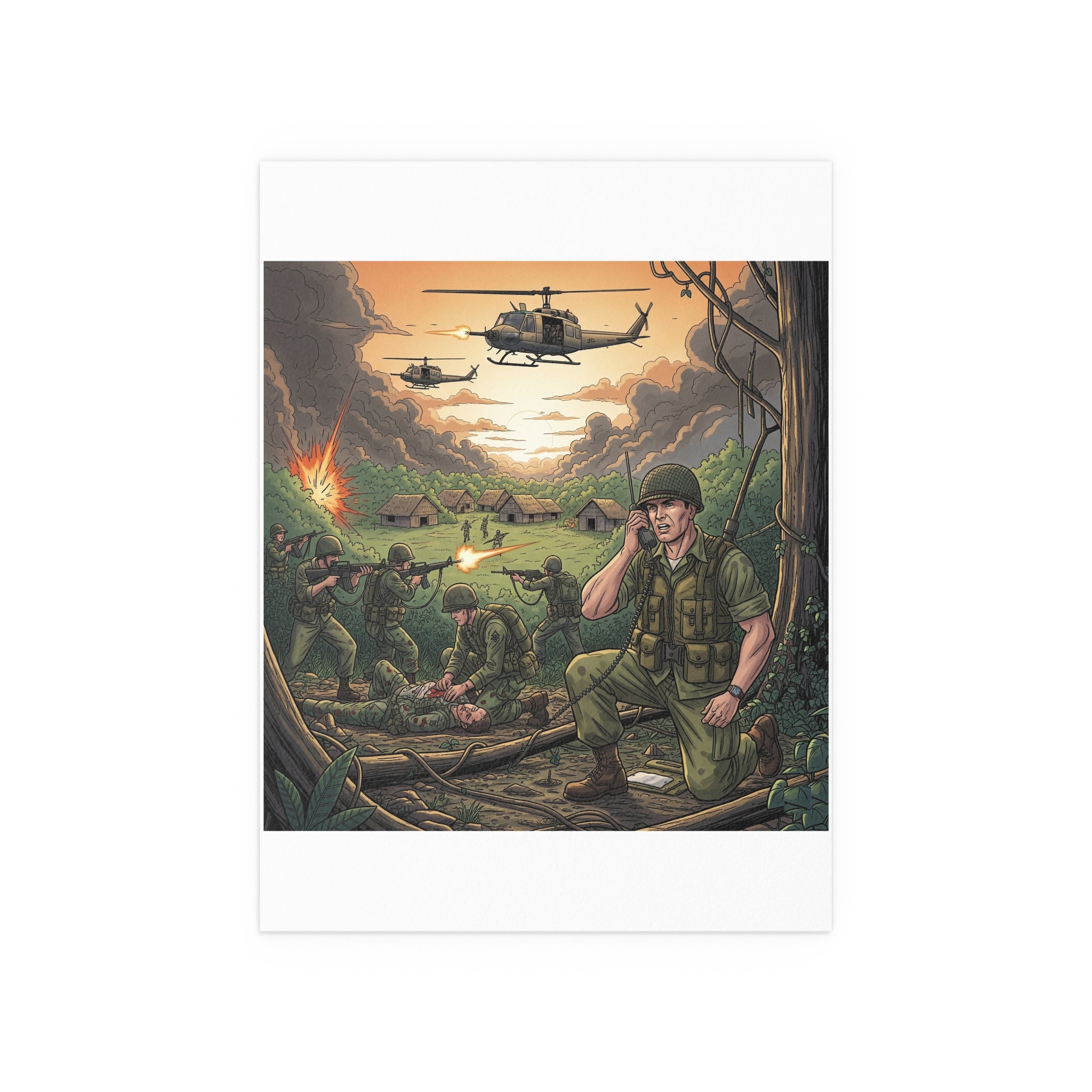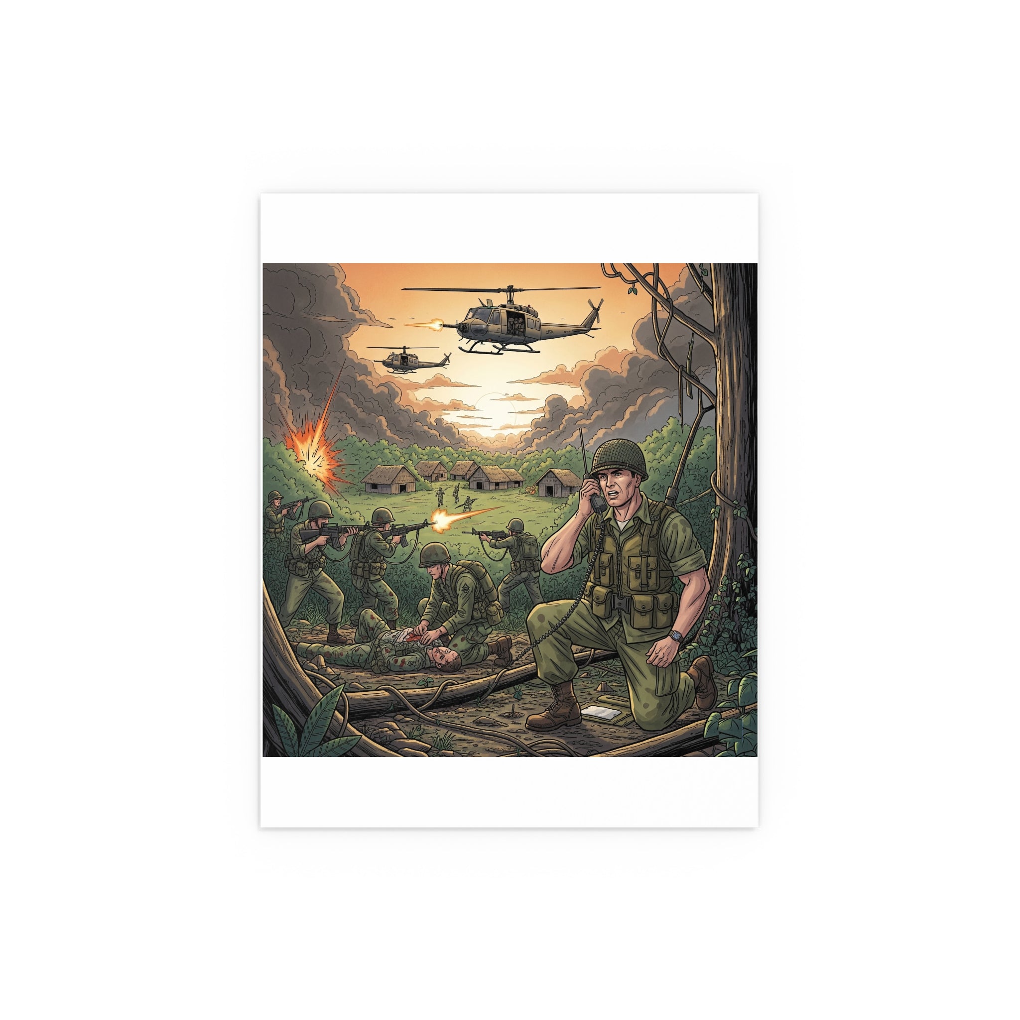 Indoor and Outdoor Silk Posters - Vietnam Patrol Fire Fight Requesting Medevac