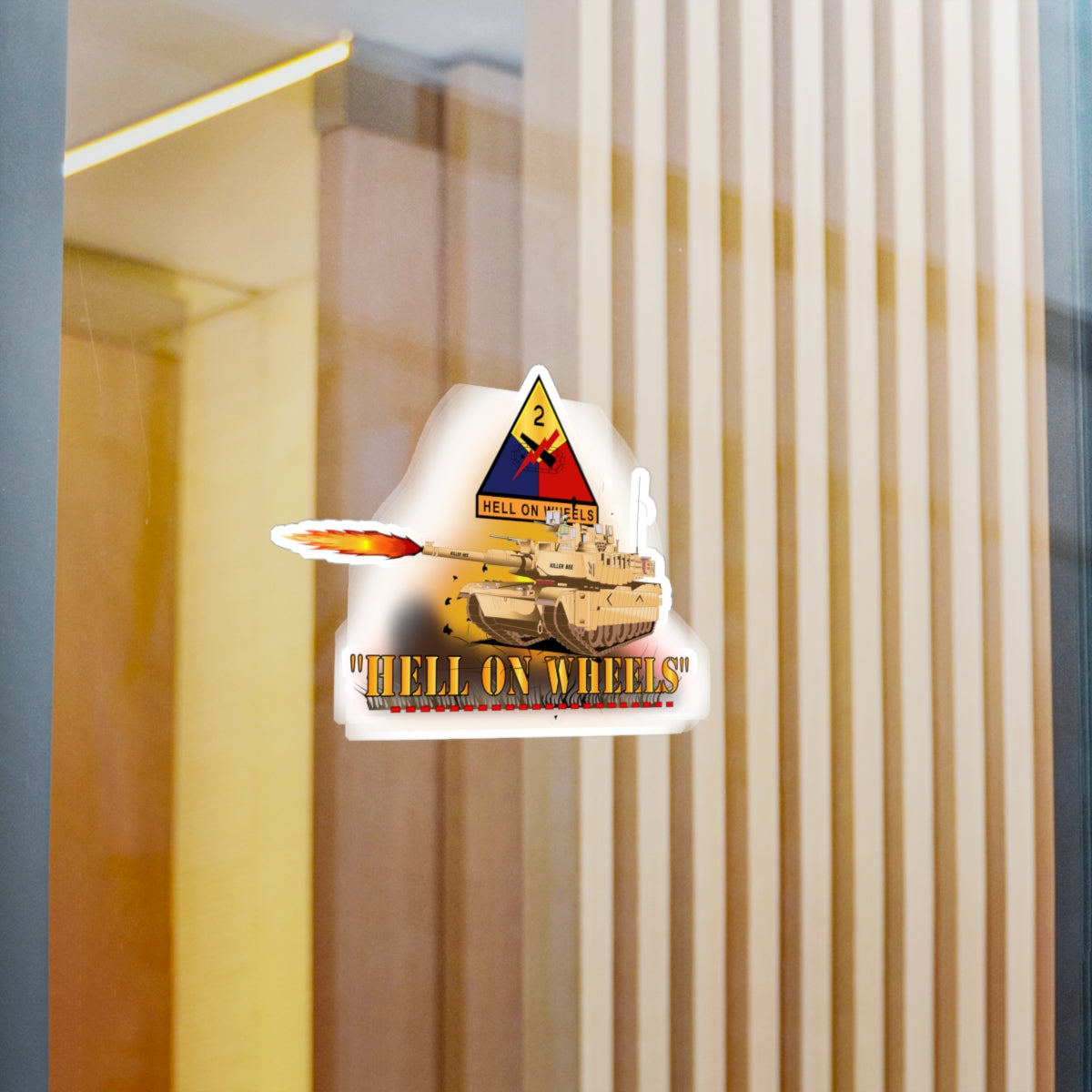 Kiss-Cut Vinyl Decals - Army - 2nd Armored Division  - M1A1 Tank  - Hell on Wheels w Fire X 300