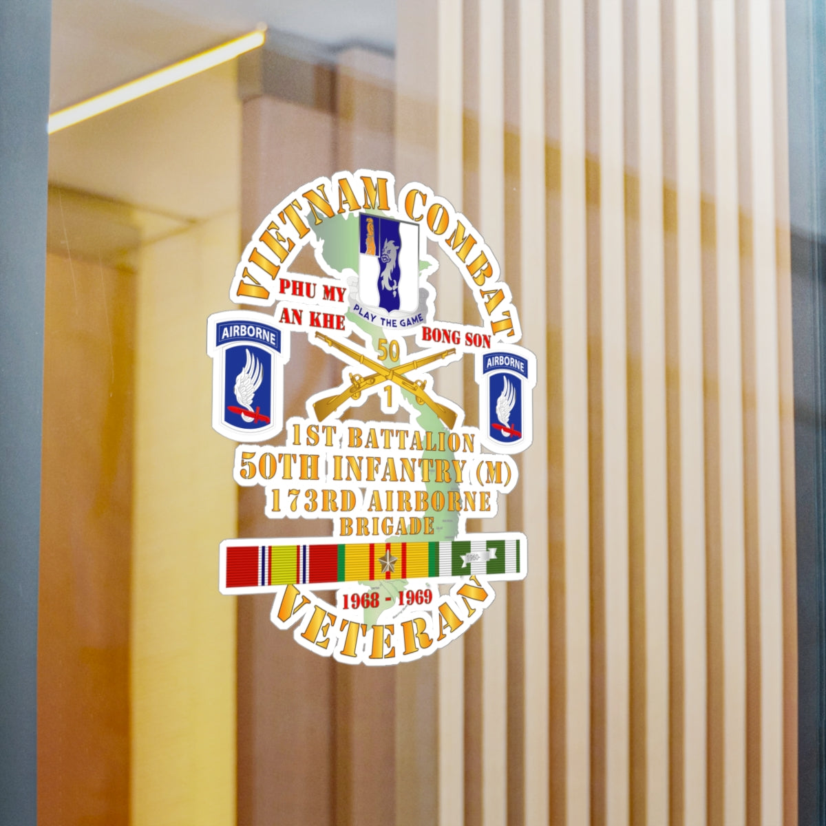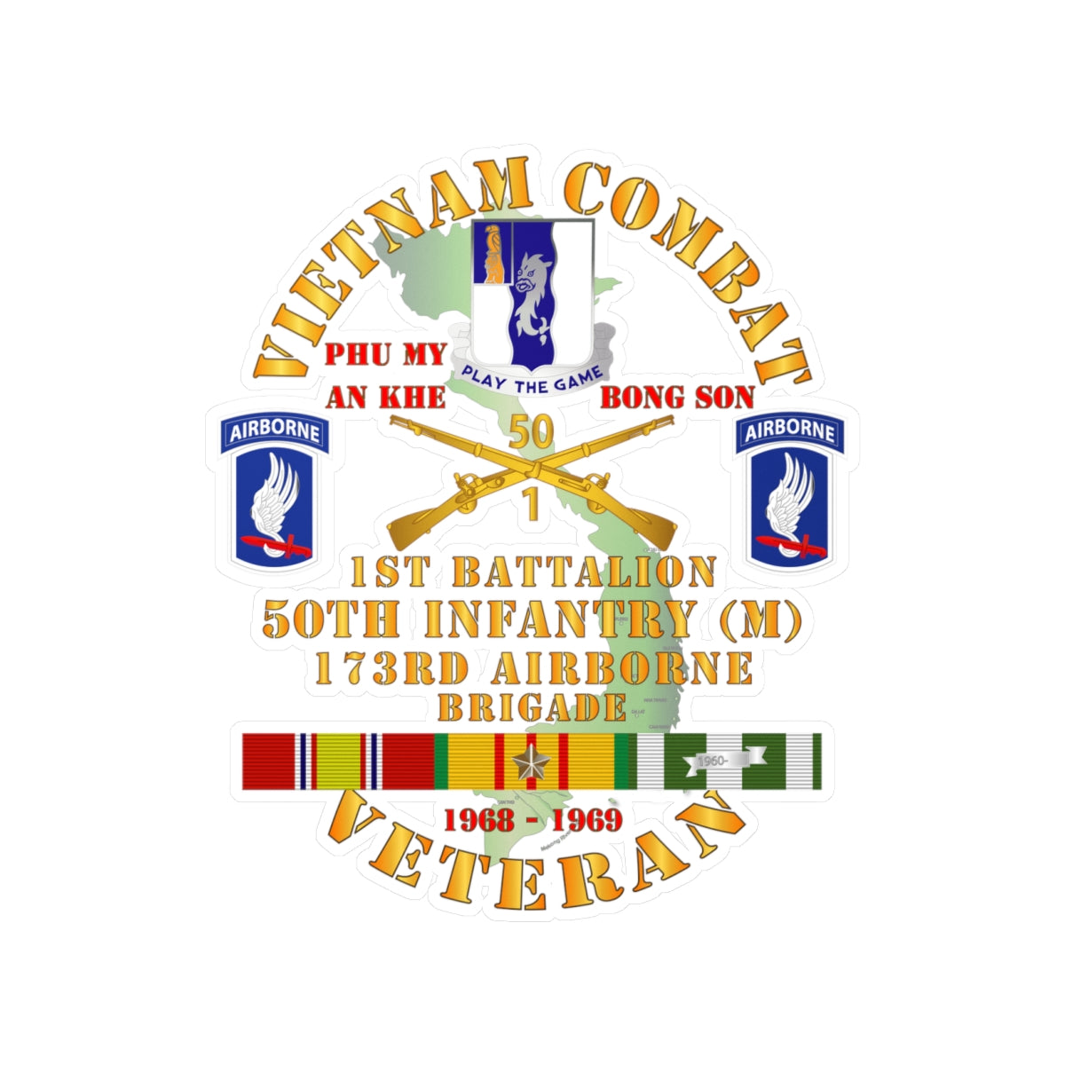 Kiss-Cut Vinyl Decals - Army - Vietnam Combat Veteran w 1st Bn - 50th Inf - 173rd Airborne Bde 1968-69 w VN SVC