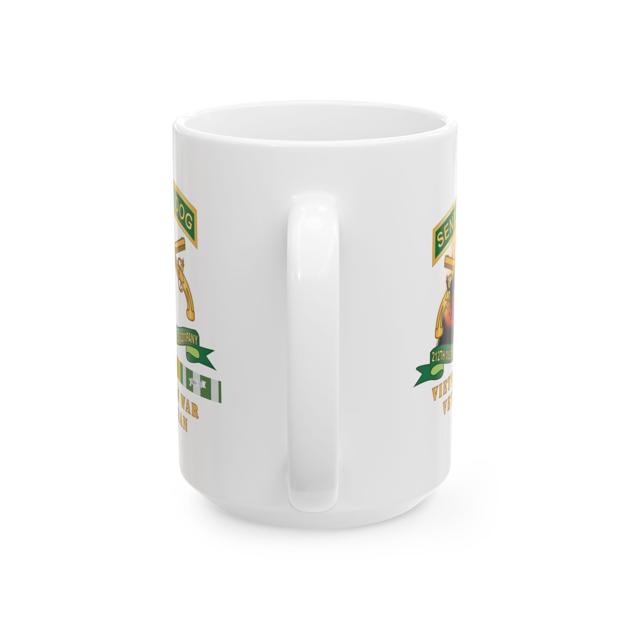 White Ceramic Mug — Army - Sentry Dog - 212th Military Police Company - 720th MP Bn w VN Svc Ribbons