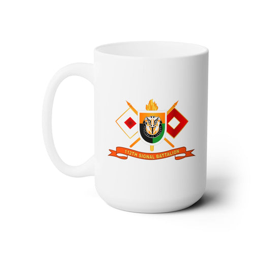 White Ceramic Mug 15oz - Army - 112th Signal Battalion w Airborne Badge - DUI - Ribbon X 300