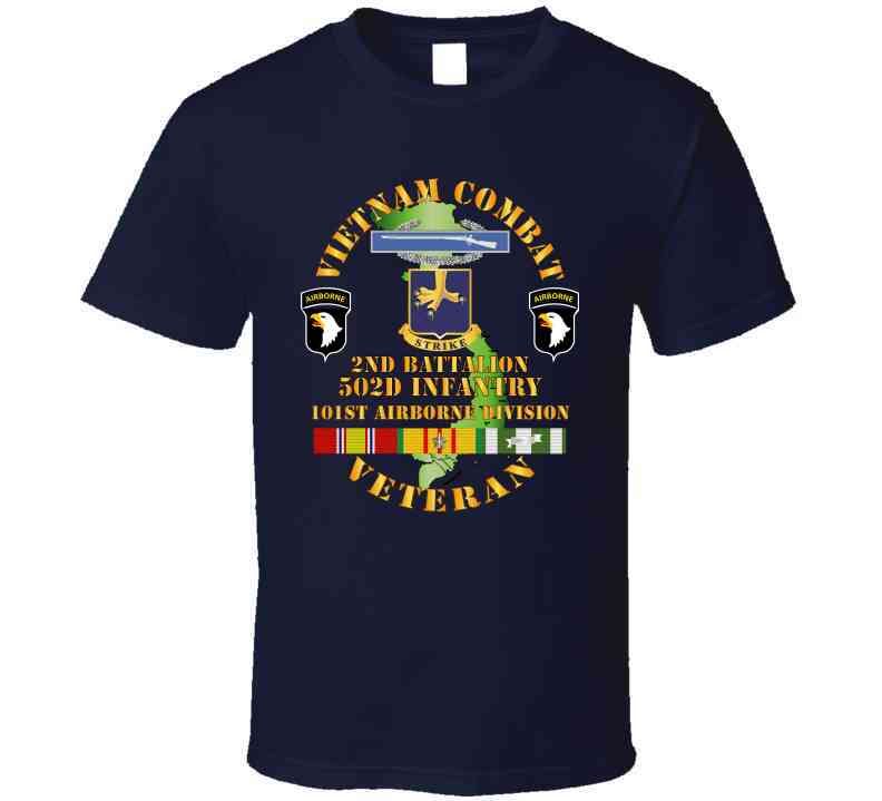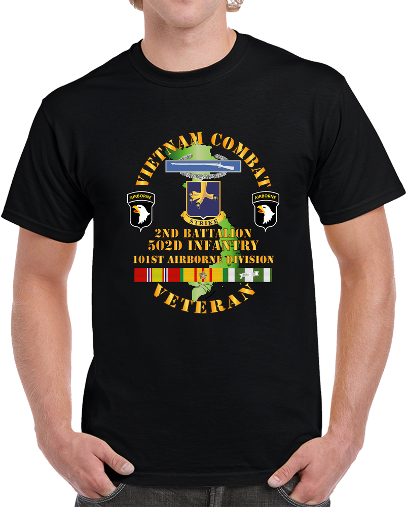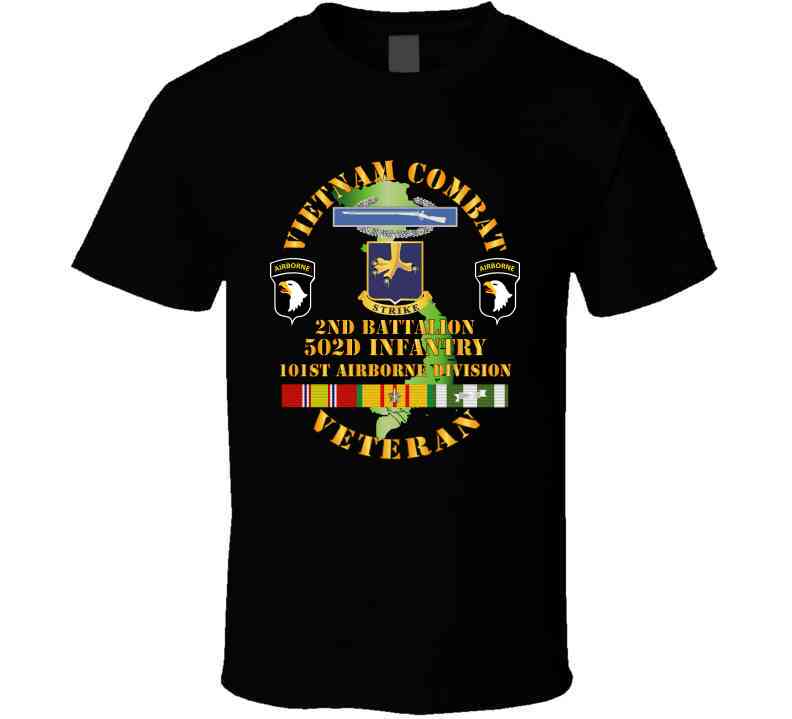 Army - Vietnam Combat Vet - 2nd Bn 502nd Infantry - 101st Airborne Div Ssi T Shirt, Various, Classic, Black