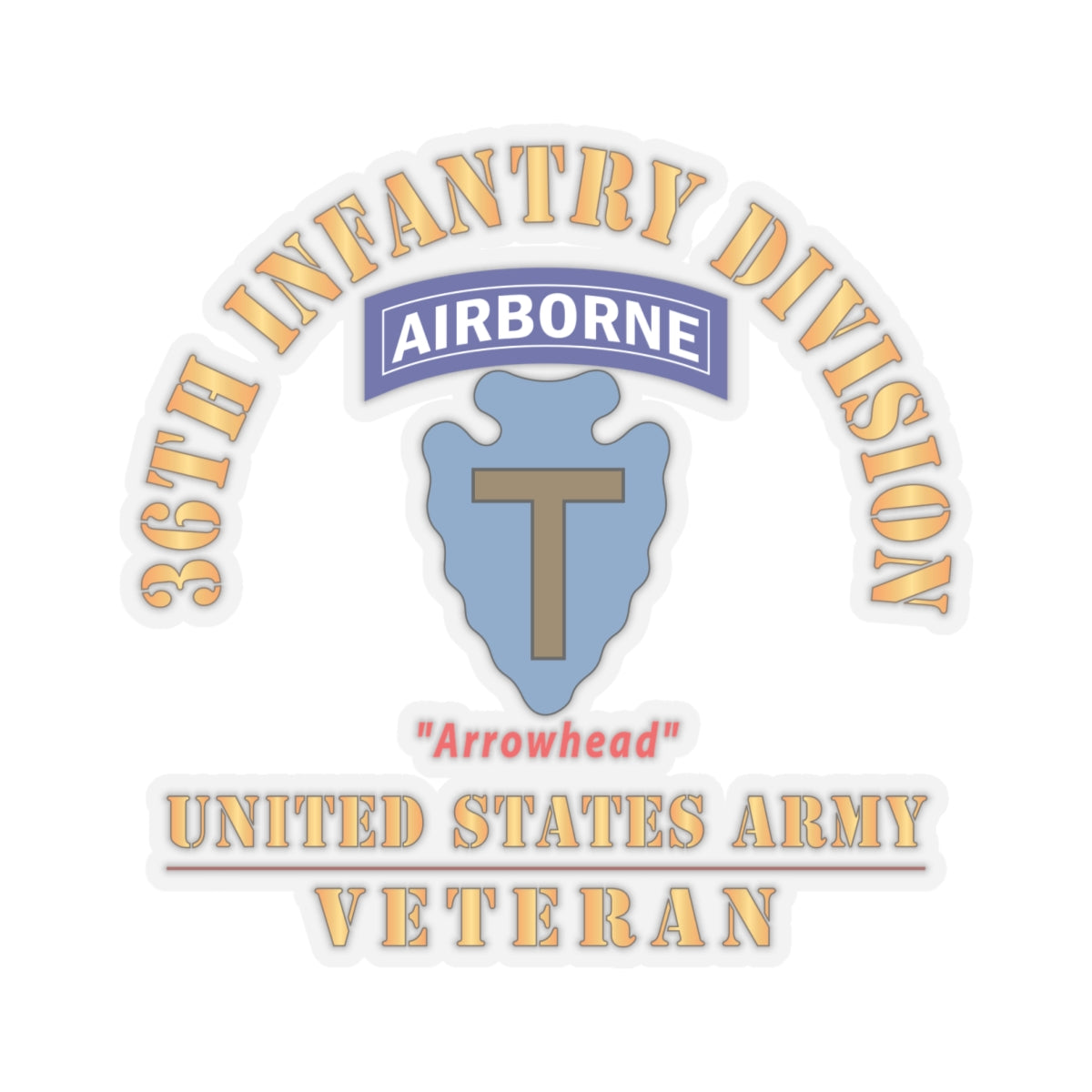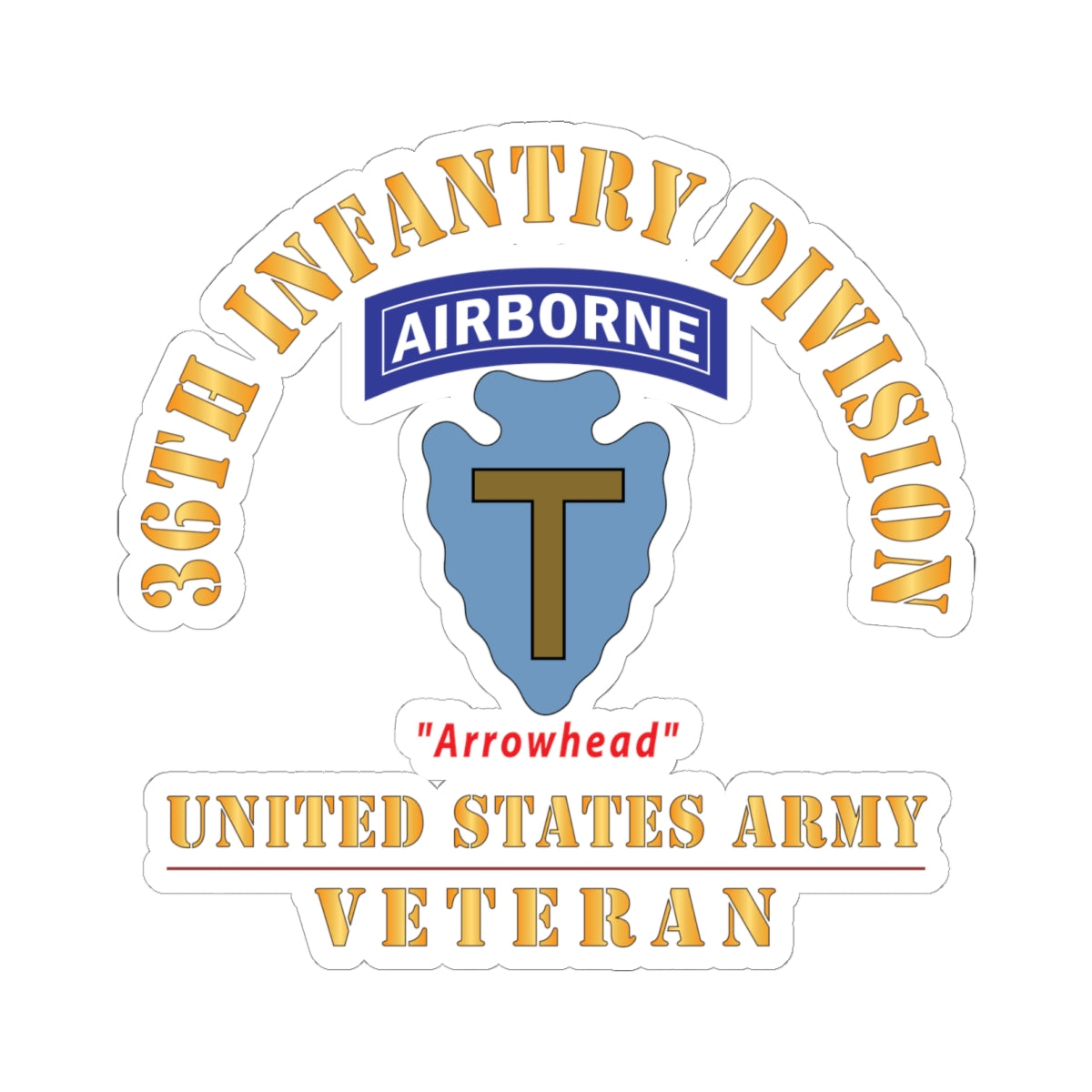 Kiss - Cut Stickers - Army - SSI - 36th Infantry Division Airborne - Arrowhead - US Army Veteran X 300