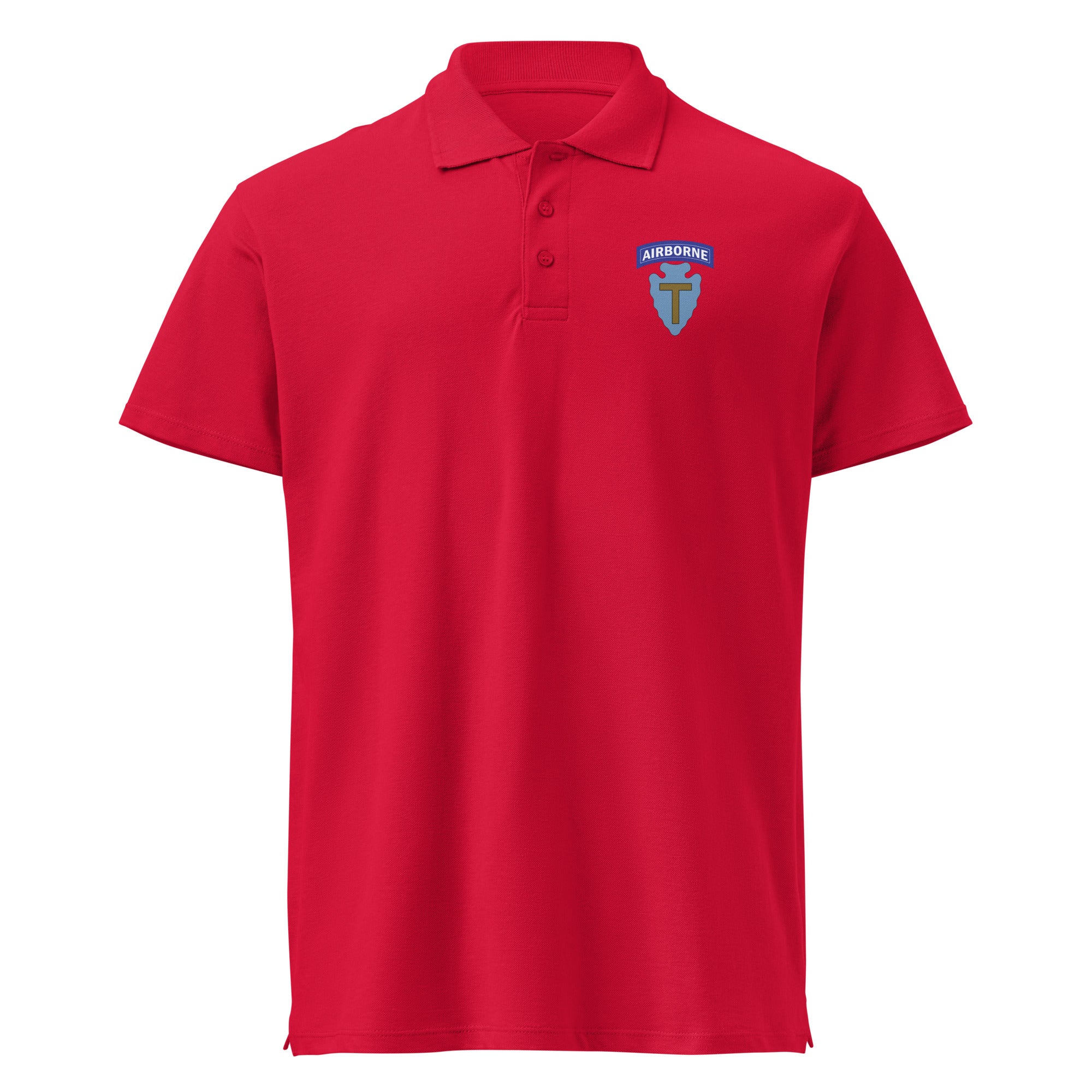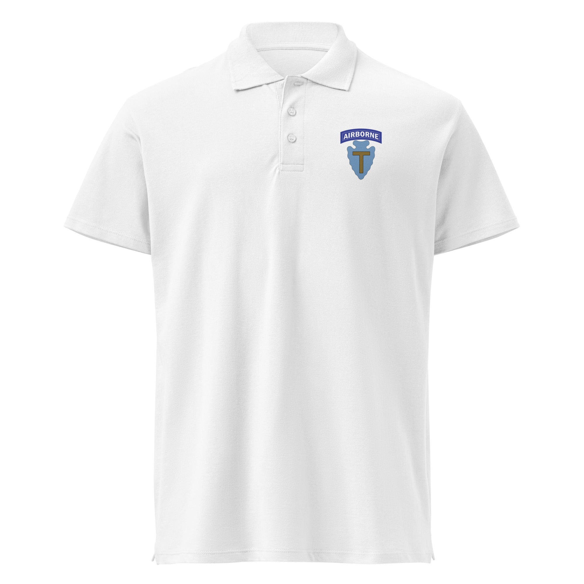 The 36th Division (Airborne) insignia represents the proud airborne heritage of the Texas Division and those who served in its ranks. Whether you're a 36th Division veteran, airborne personnel, or military heritage collector, this polo lets you honor the legacy of the T-Patchers' airborne excellence with pride and sophistication.