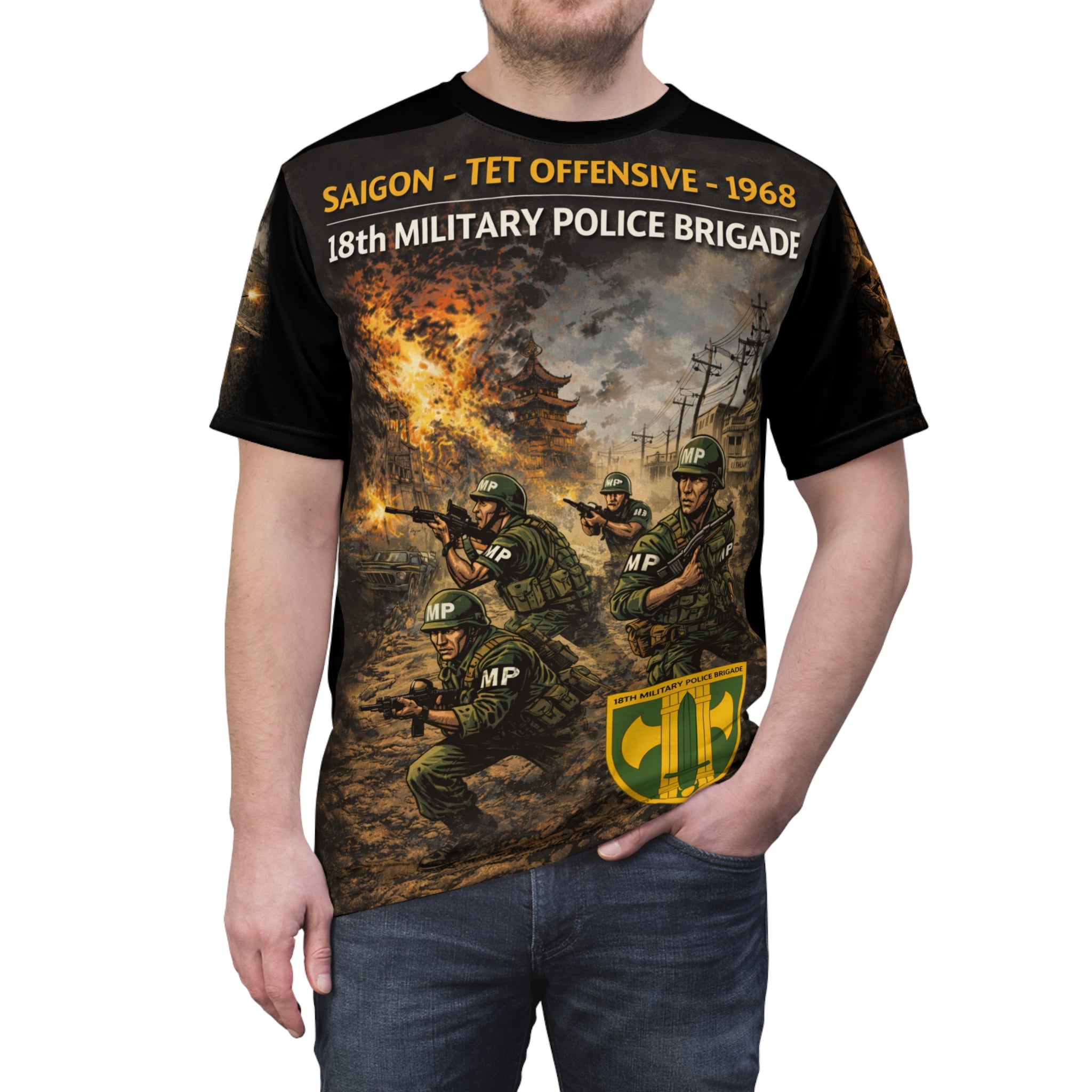 This tee carries quiet resolve. Inspired by the 18th Military Police Brigade and the Tet 1968 Offensive, the shirt feels like a wearable moment of remembrance—steady, respectful, and built to last. Designed for those who honor the courage and discipline of military police during one of the Vietnam War's most pivotal battles.