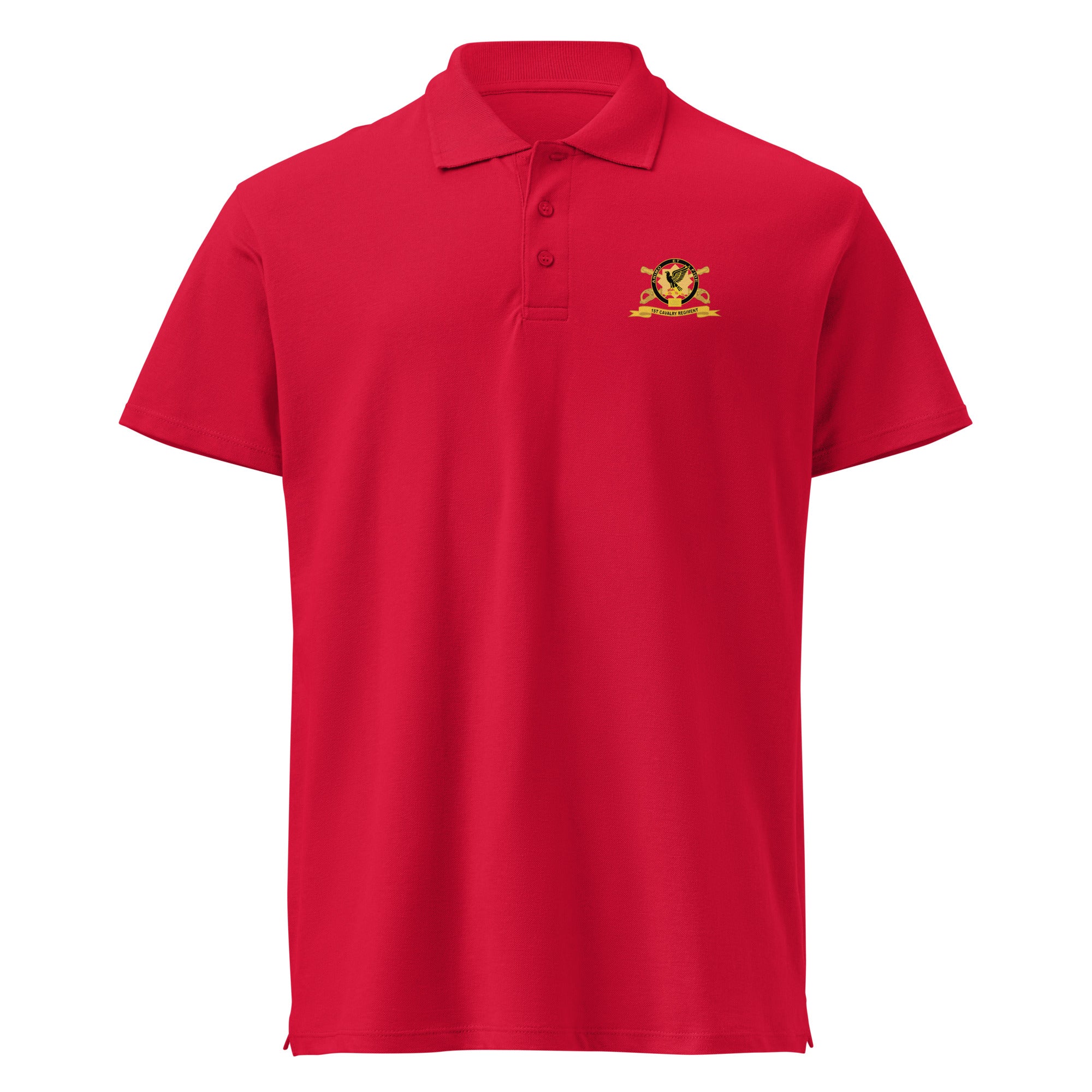 This premium pique polo honors the distinguished service of the 1st Cavalry Regiment with authentic insignia and service ribbon detail. Crafted from thick, soft 100% combed ring-spun cotton, this polo delivers all-day comfort whether you're attending veteran reunions, cavalry gatherings, or carrying your service pride into everyday life.