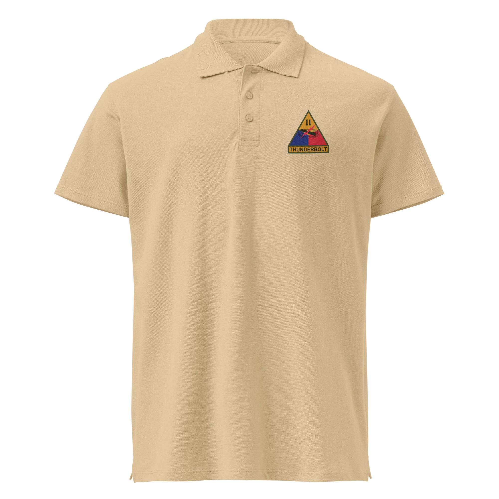 Honor the legacy of the legendary 11th Armored Division with this premium pique polo shirt, featuring authentic shoulder sleeve insignia (SSI) and personalized name tape. Known as the "Thunderbolt Division," the 11th Armored played a crucial role in the liberation of Europe during World War II, breaking through enemy lines with speed and devastating firepower.