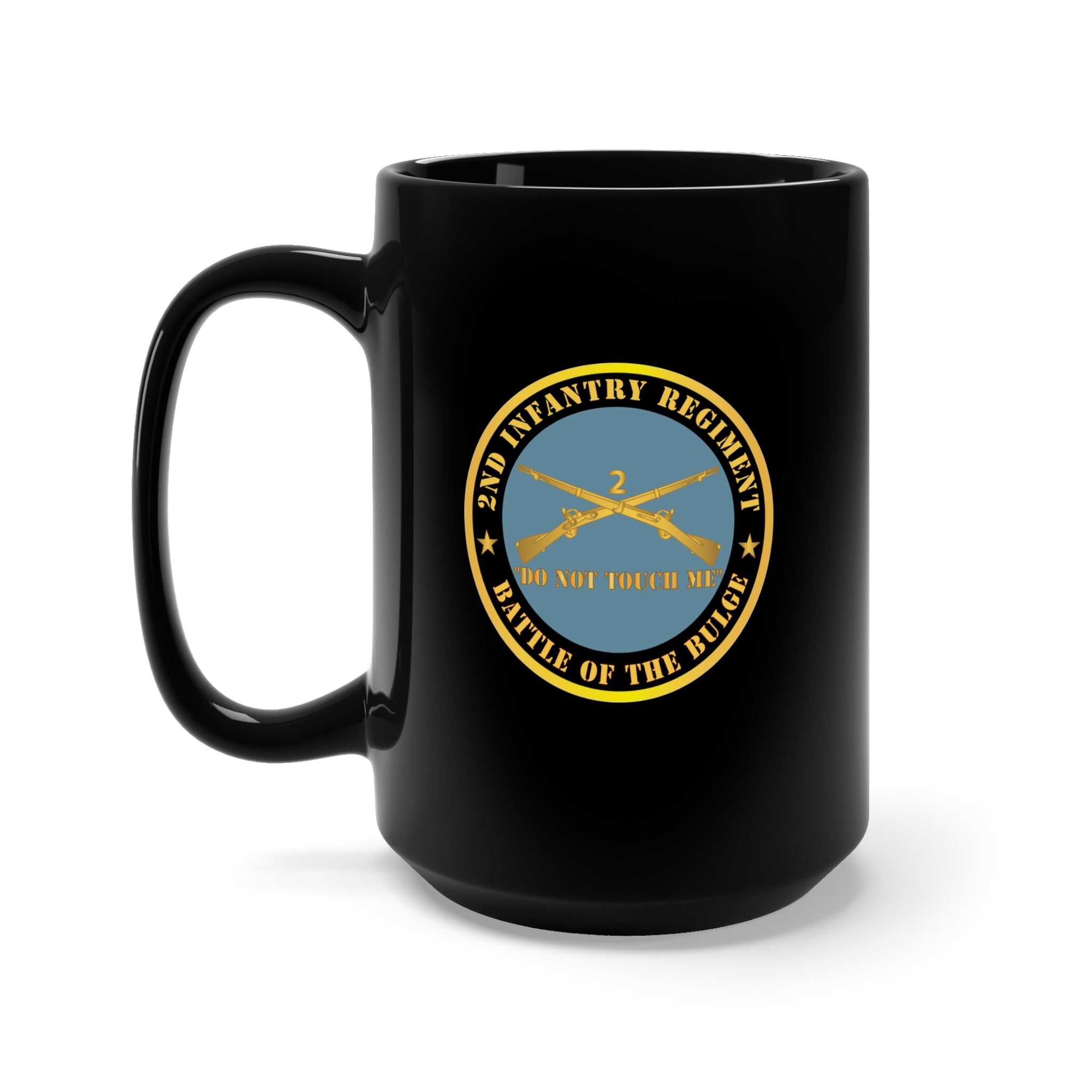 Black Mug 15oz - Army - 2nd Infantry Regiment Branch - Do Not Touch Me - Battle of the Bulge X 300