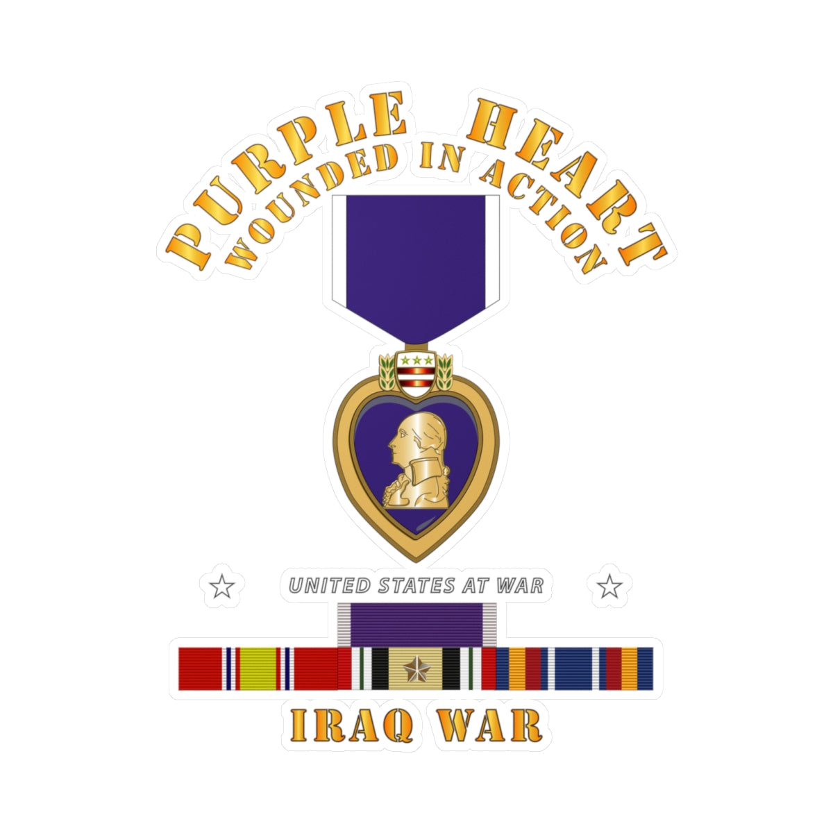 Kiss-Cut Vinyl Decals - Purple Heart - WIA w IRAQ SVC w Purple Heart Ribbon