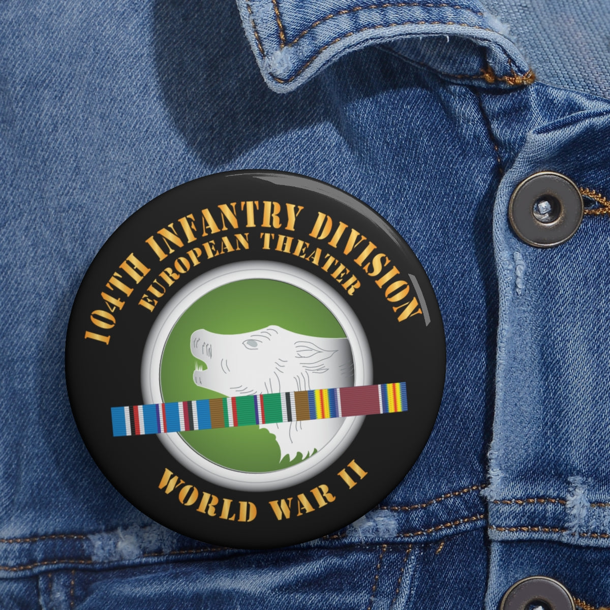 Custom Pin Buttons - 104th Infantry Division - Europe - Ribbons Centered - WWII X 300