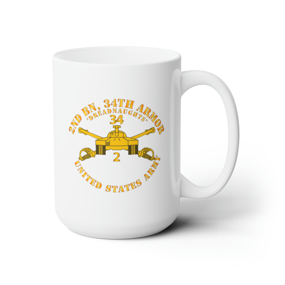 White Ceramic Mug 15oz - Army - 2nd Bn 34th Armor - Dreadnaughts - Armor Branch