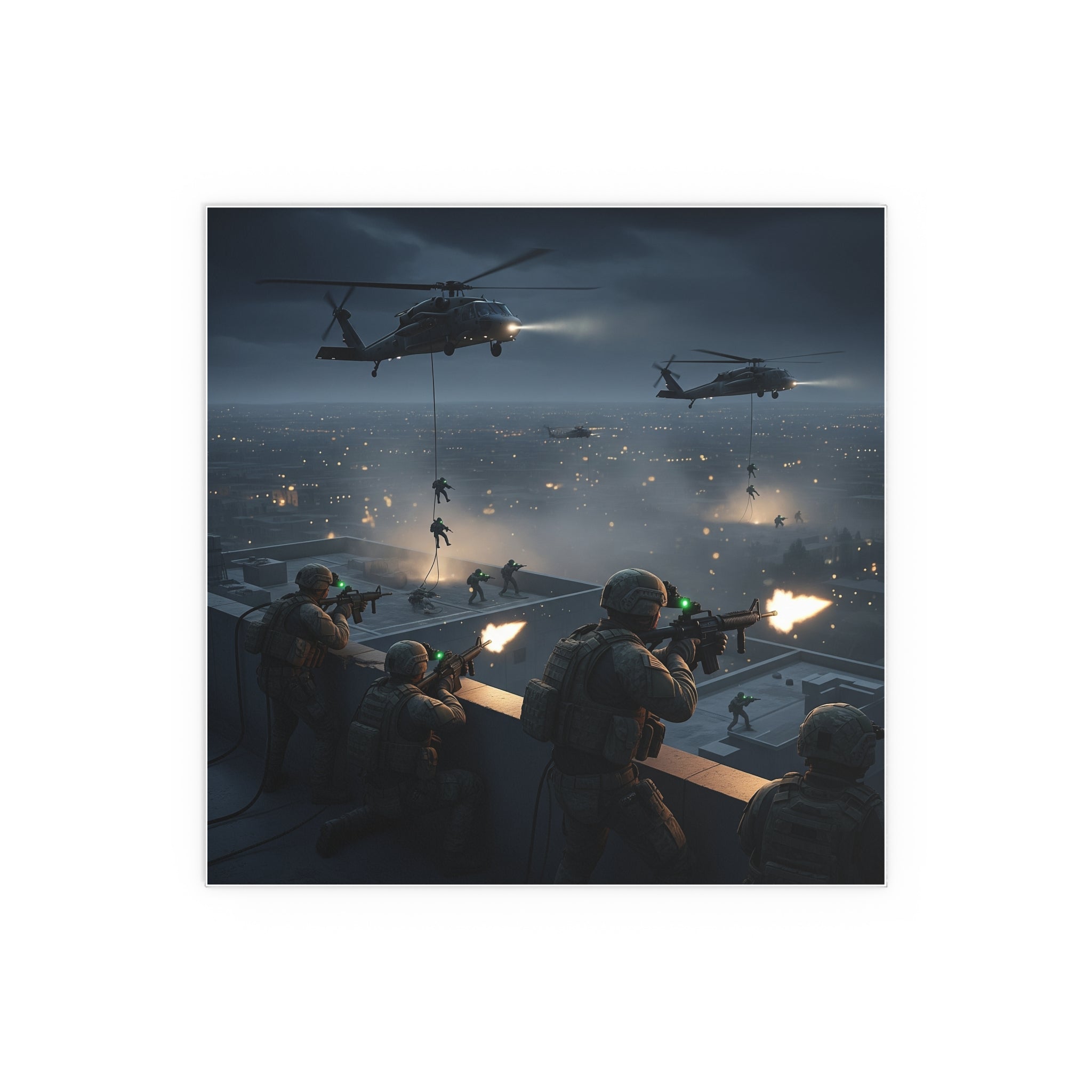 Indoor and Outdoor Silk Posters - Night Air Assault by Army Rangers