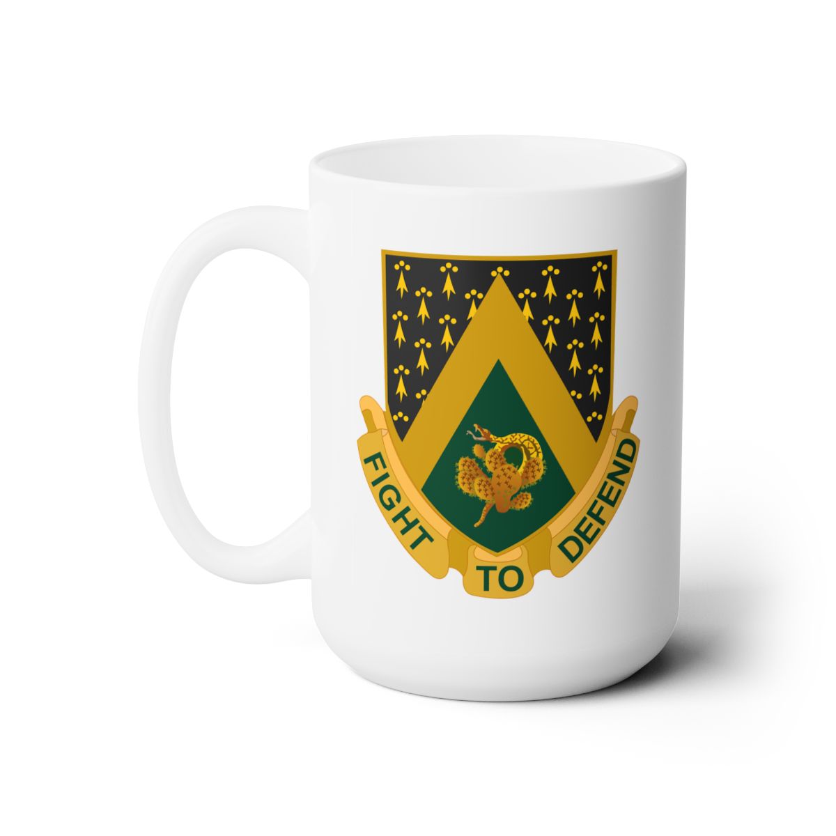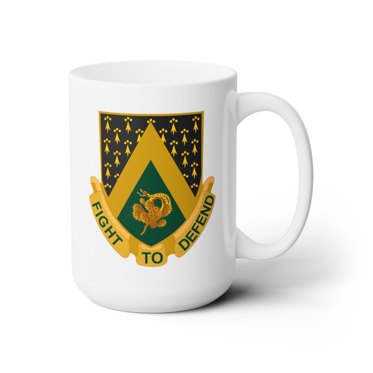 • Load image into Gallery viewer, White Ceramic Mug 15oz - Army  - 240th Cavalry Regiment DUI wo Txt X 300