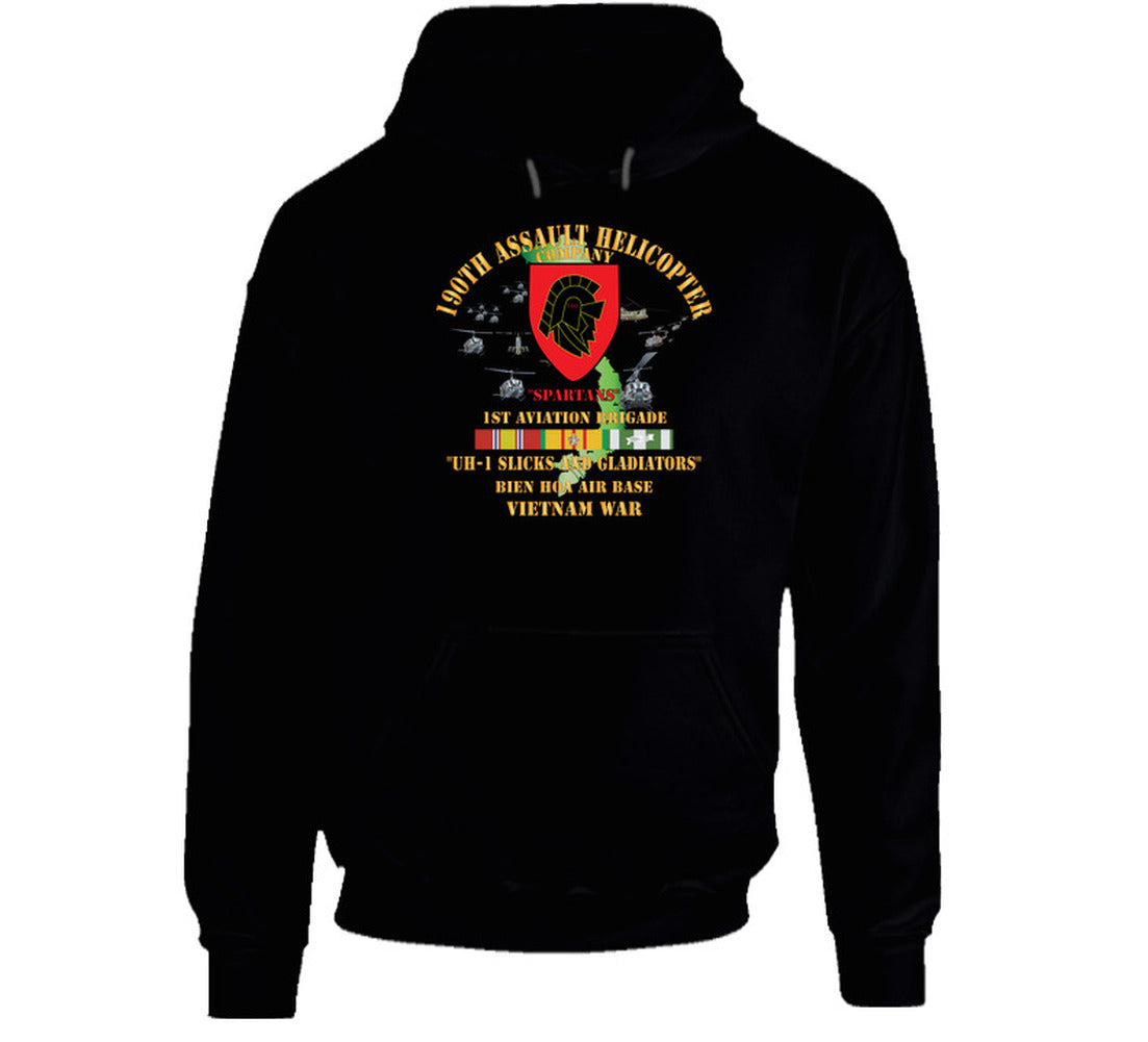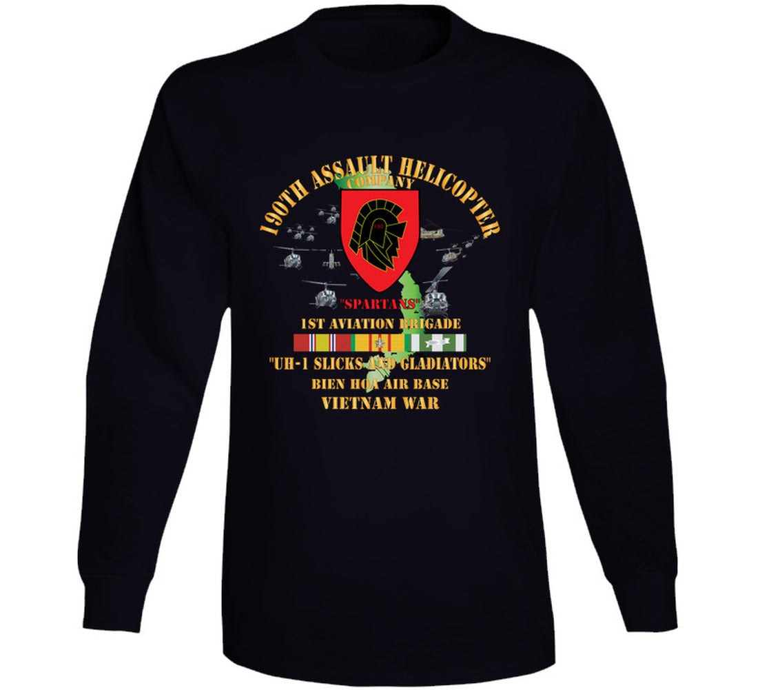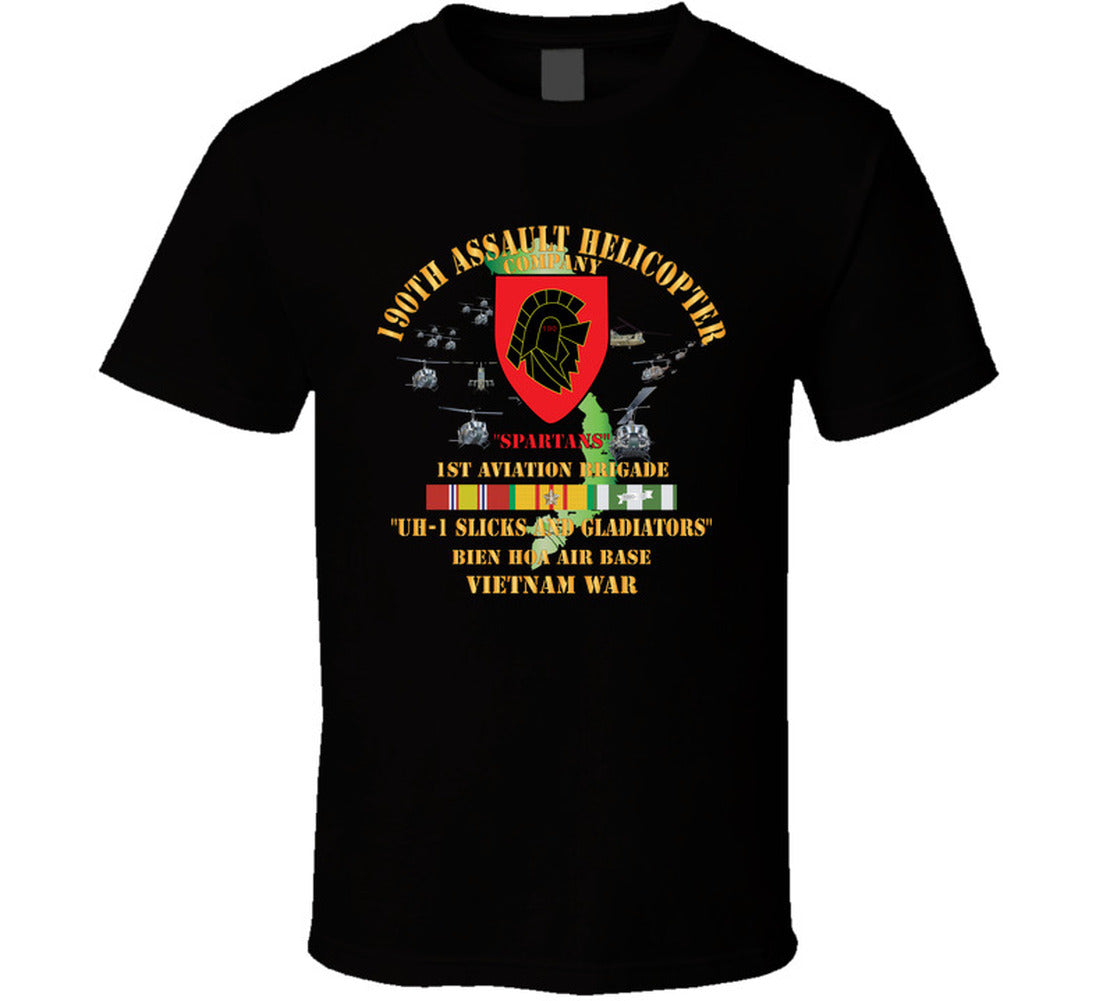 Army - 190th Assault Helicopter Company - SSI - Red- Gladiators - Bien Hoa Air Base, W VN SVC X 300 T Shirt, Various, Classic, Black