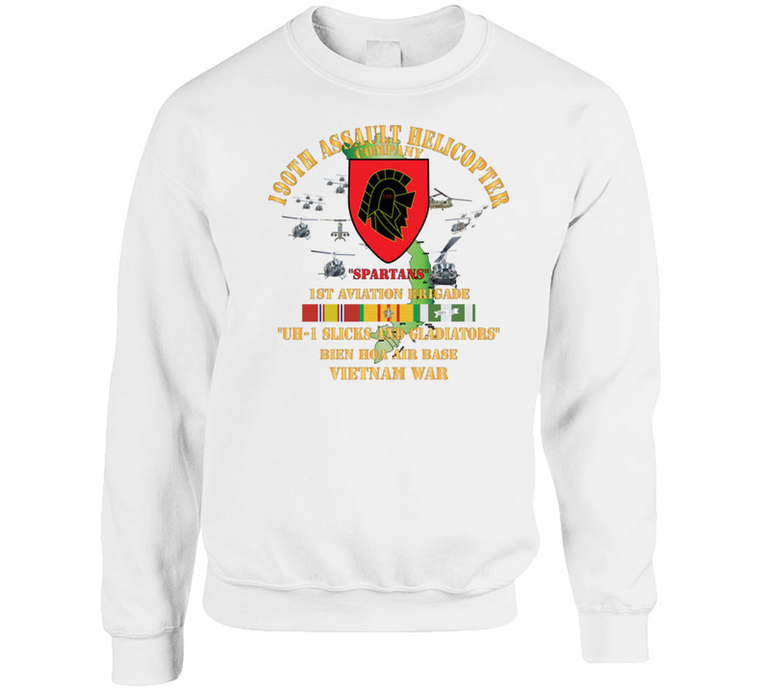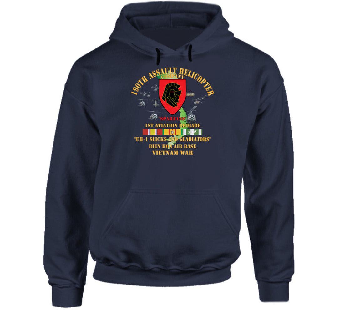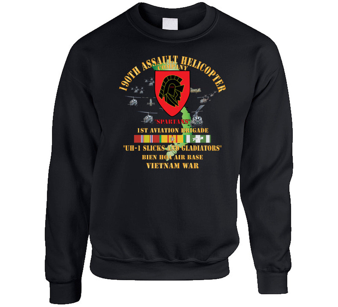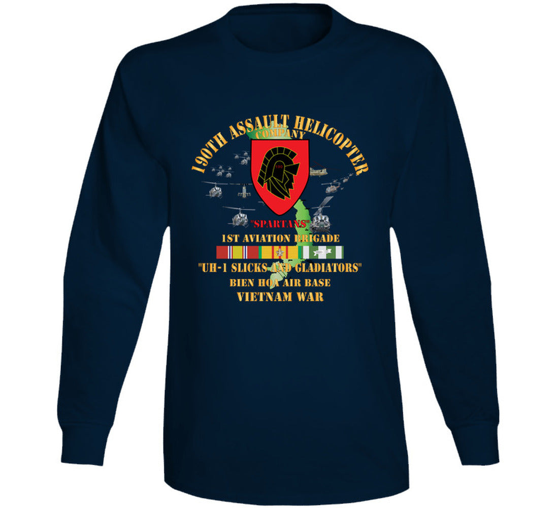Army - 190th Assault Helicopter Company - SSI - Red- Gladiators - Bien Hoa Air Base, W VN SVC X 300 T Shirt, Various, Classic, Black