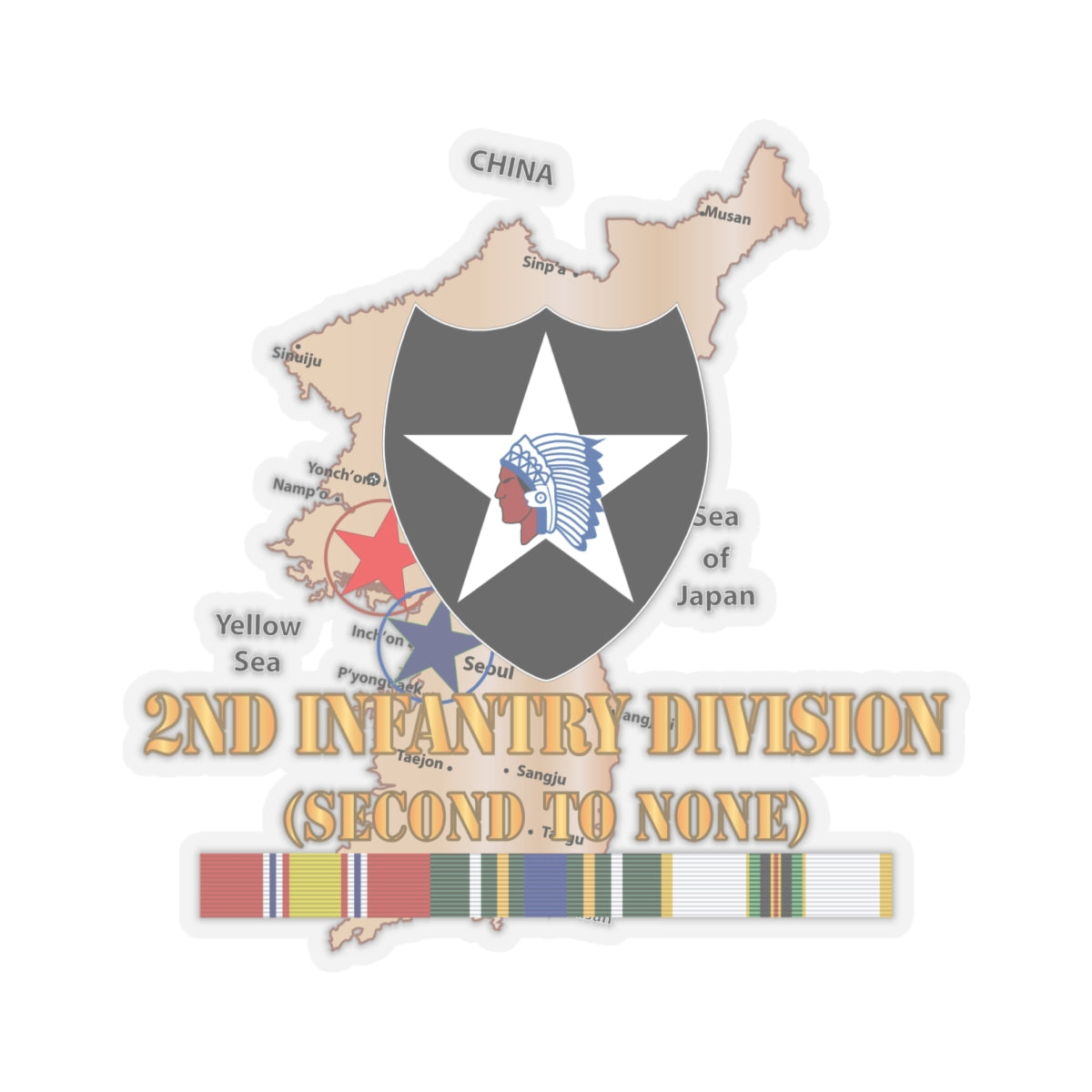 Kiss-Cut Stickers - Army - Korea Map - 2nd Infantry Div - Second to None w SVC X 300