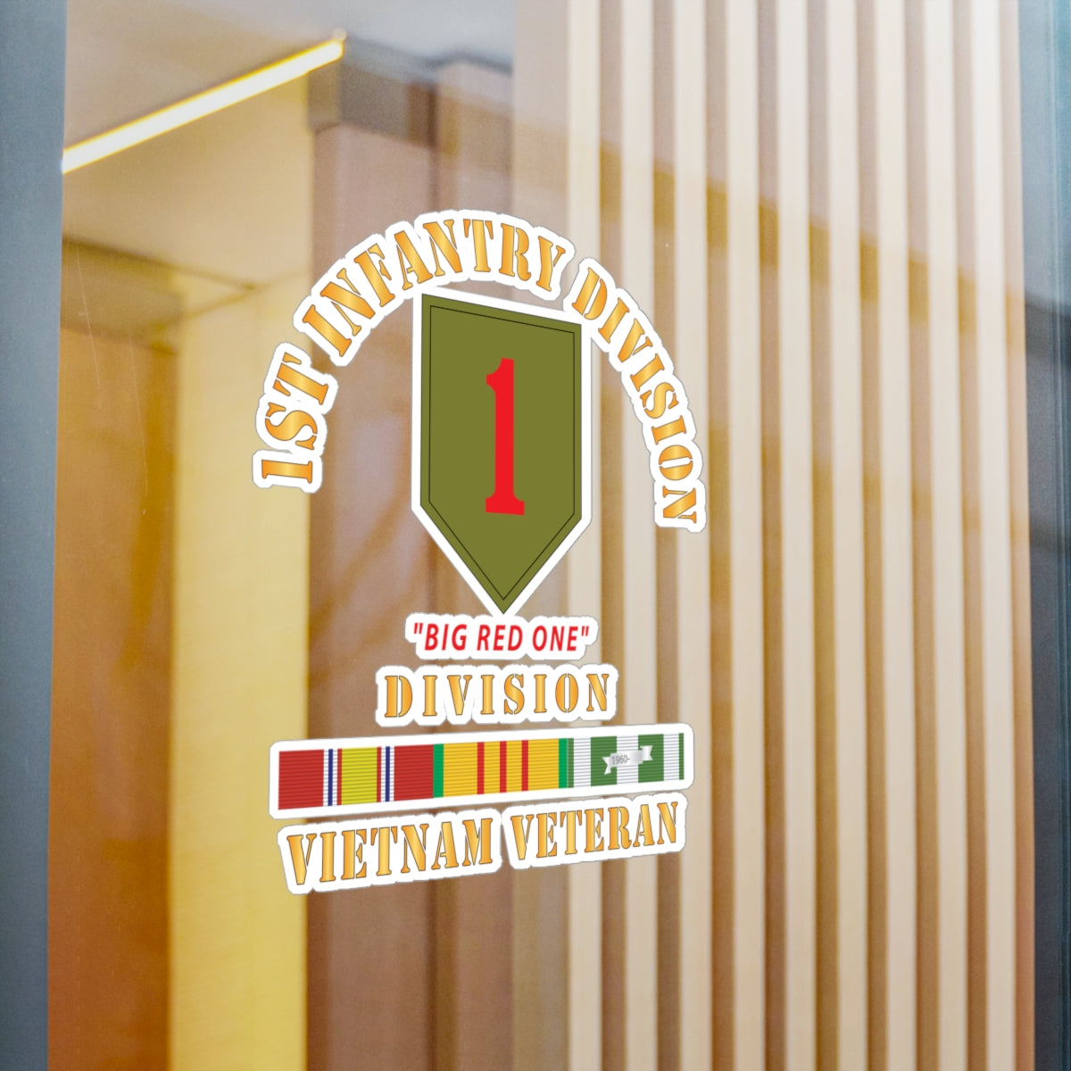 Kiss-Cut Vinyl Decals - Army - SSI - 1st Infantry Division - Big Red One - Vietnam Veteran w VN SVC Bar X 300