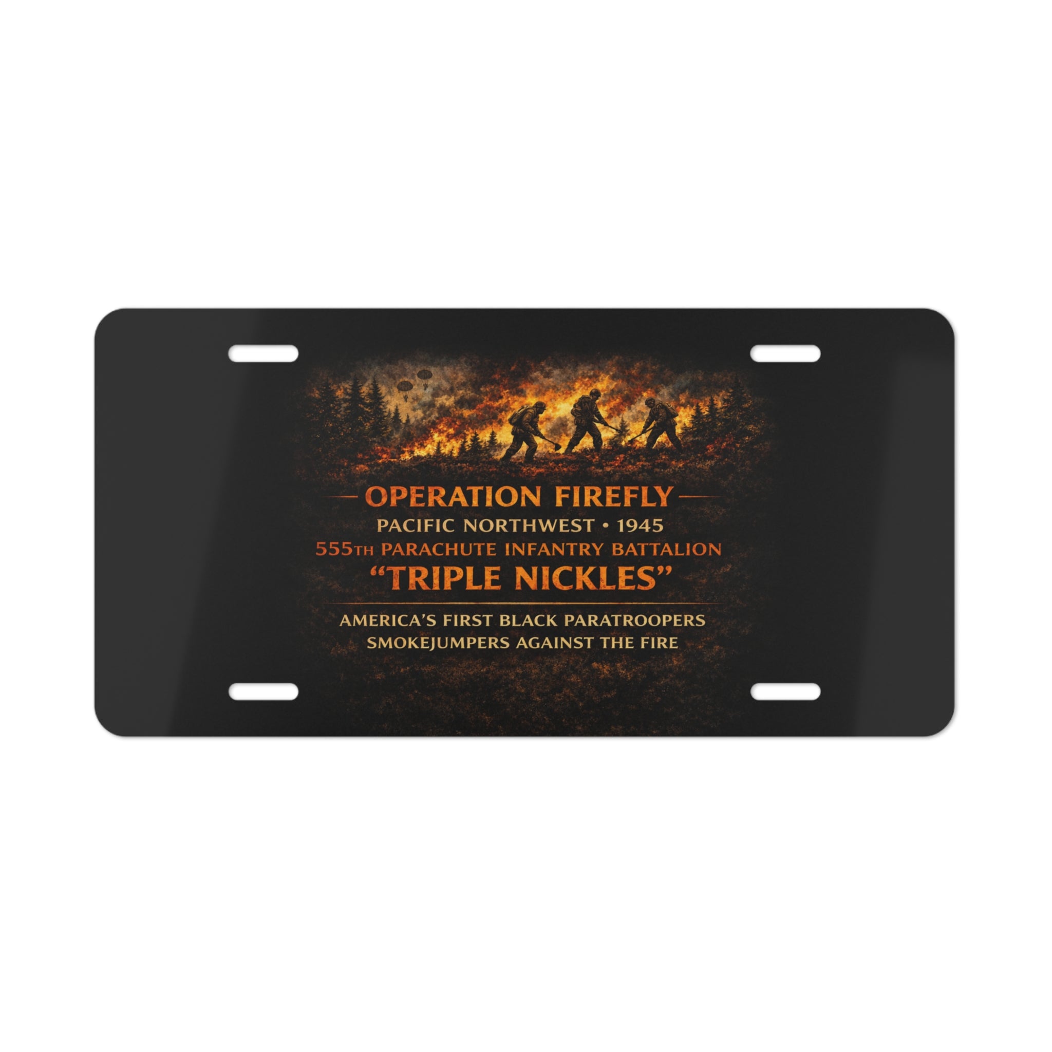 This license plate channels a quiet, steady sort of pride—the kind that comes from knowing the 555th Parachute Infantry Battalion, the Black Panthers, fought with grit and dignity in WWII. A small monument you can hang on a wall, in a garage, or on a custom vehicle display, it settles into places where history is remembered and service stories are told.
