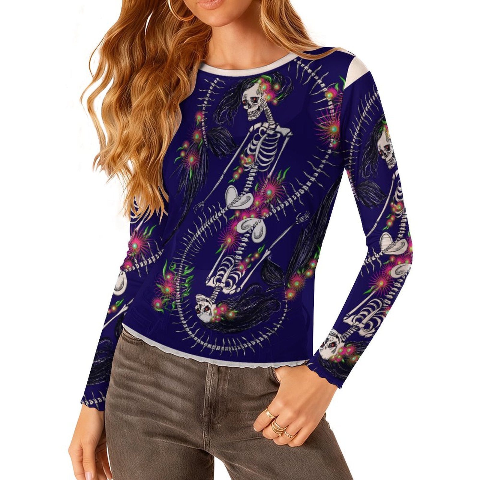 • Unique Design: This slim-fit Long Sleeve Mesh T-Shirt highlights feminine charm to the fullest.