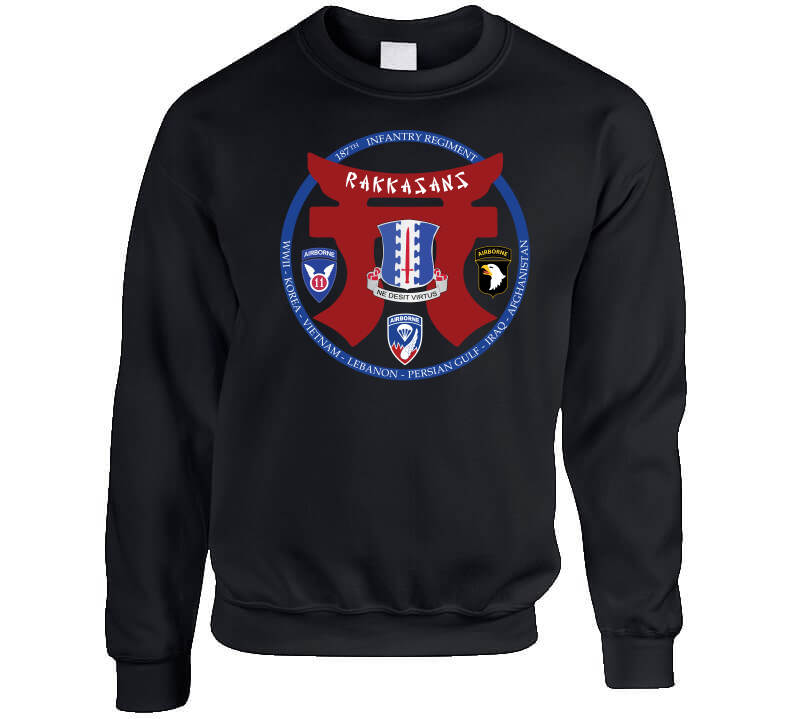 The 187th Infantry Regiment, known as the "Rakkasans," is an airborne infantry regiment of the U.S. Army and part of the 101st Airborne Division. The name "Rakkasans," which means "falling down umbrella" in Japanese, reflects their airborne capabilities. They are renowned for their distinguished service in World War II, the Korean War, Vietnam, and more recent conflicts in Iraq and Afghanistan. The Rakkasans are recognized for their elite airborne training, rapid deployment abilities, and history of excellence in combat operations.