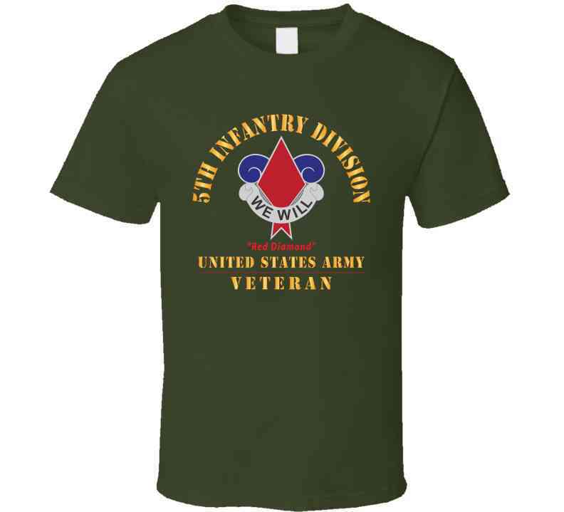 Army - Dui - 5th Infantry Division - Red Diamond - Us Army Veteran X 300 T Shirt, Various, Classic, Black