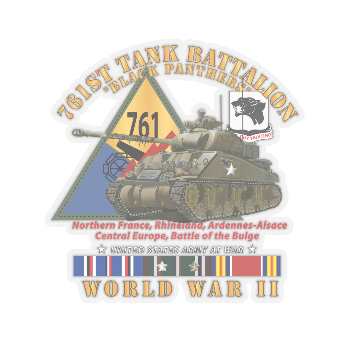 Kiss-Cut Stickers - Army - 761st Tank Battalion - Black Panthers - w Tank w SSI WWII EU SVC