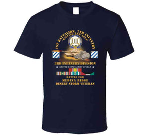 The 7th Infantry Regiment is an infantry regiment in the United States Army. In its 200-year history it has participated in 12 wars, been awarded 78 campaign streamers, and 14 unit decorations.The regiment has served in more campaigns than any other infantry unit in the United States Army.The Battle of Medina Ridge was a tank battle fought on the 27 February 1991, during the Gulf War, between the U.S. 1st Armored Division and the 2nd Brigade of the Iraqi Republican Guard Medina Luminous Division outside Basra, Iraq.[14] The U.S. 3rd Brigade, 3rd Infantry Division, was also a major contributor, by leading the attack. Iraq's Adnan Motorized Division was also a participant.