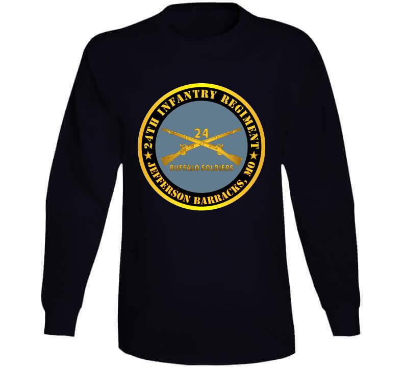 Army - 24th Infantry Regiment - Jefferson Barracks, Mo - Buffalo Soldiers W Inf Branch T Shirt, Various, Classic, Navy