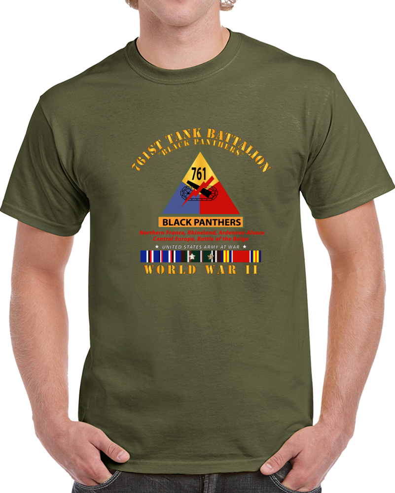 Army - 761st Tank Battalion - Black Panthers W Ssi Name Tape Wwii Eu Svc T Shirt