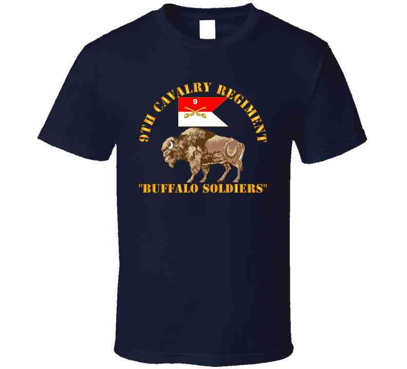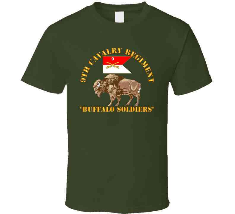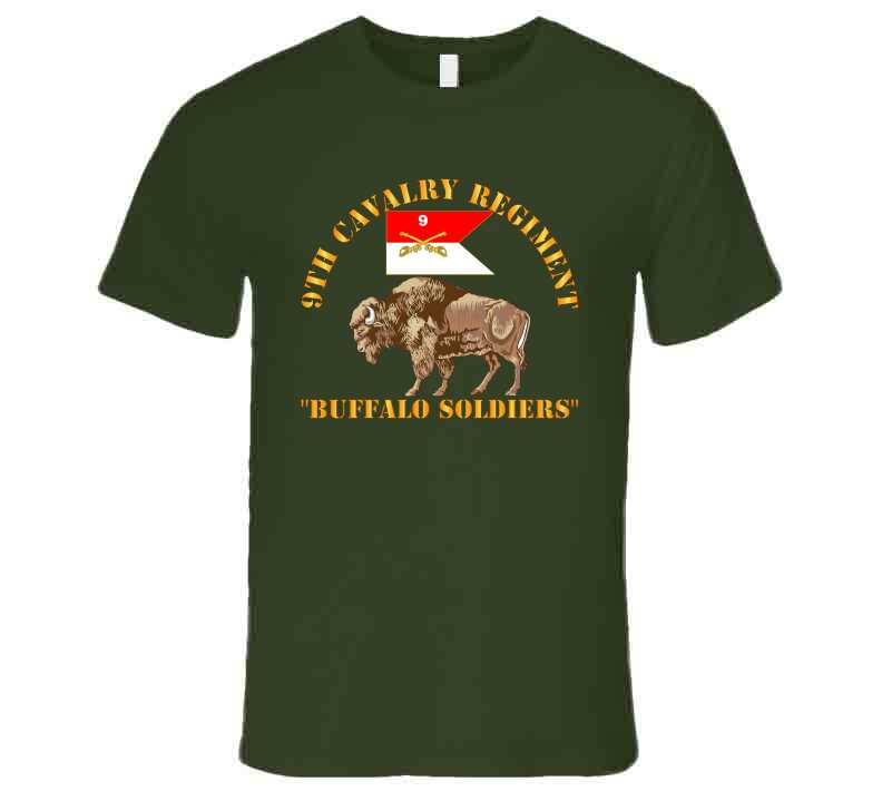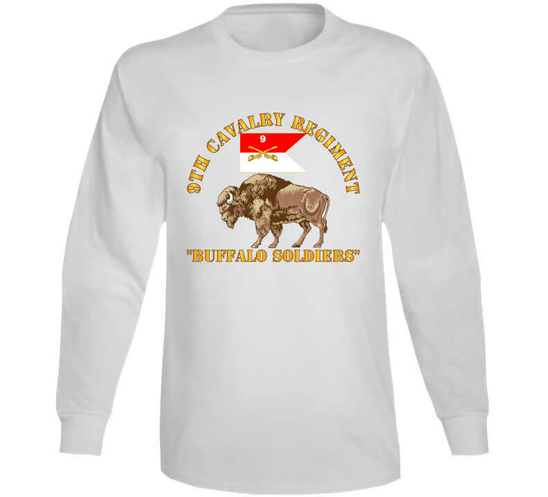 Army - 9th Cavalry Regiment - Buffalo Soldiers W 9th Cav Guidon Long Sleeve T Shirt