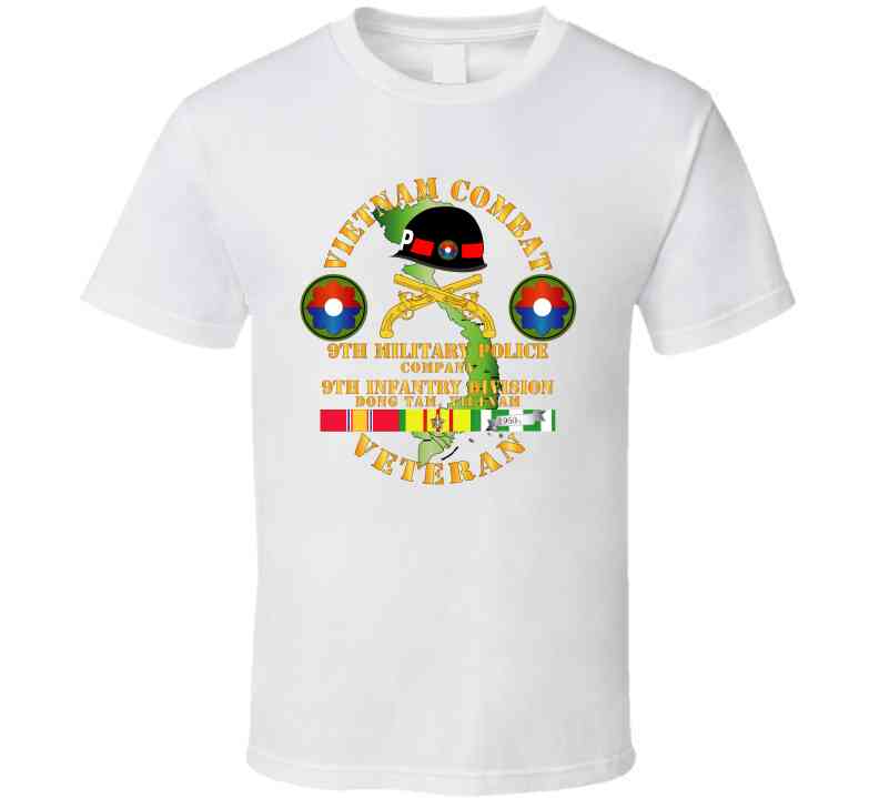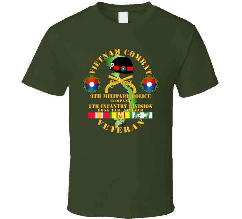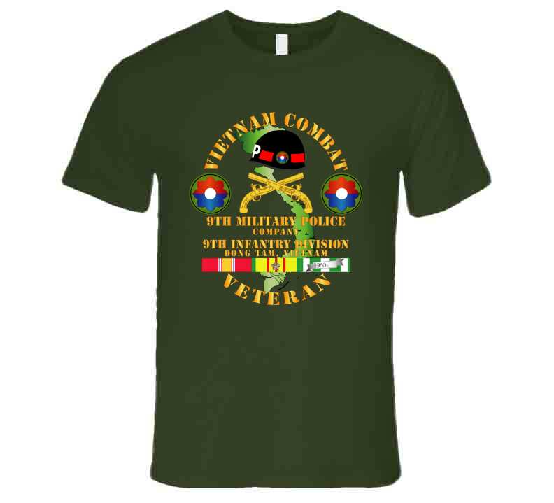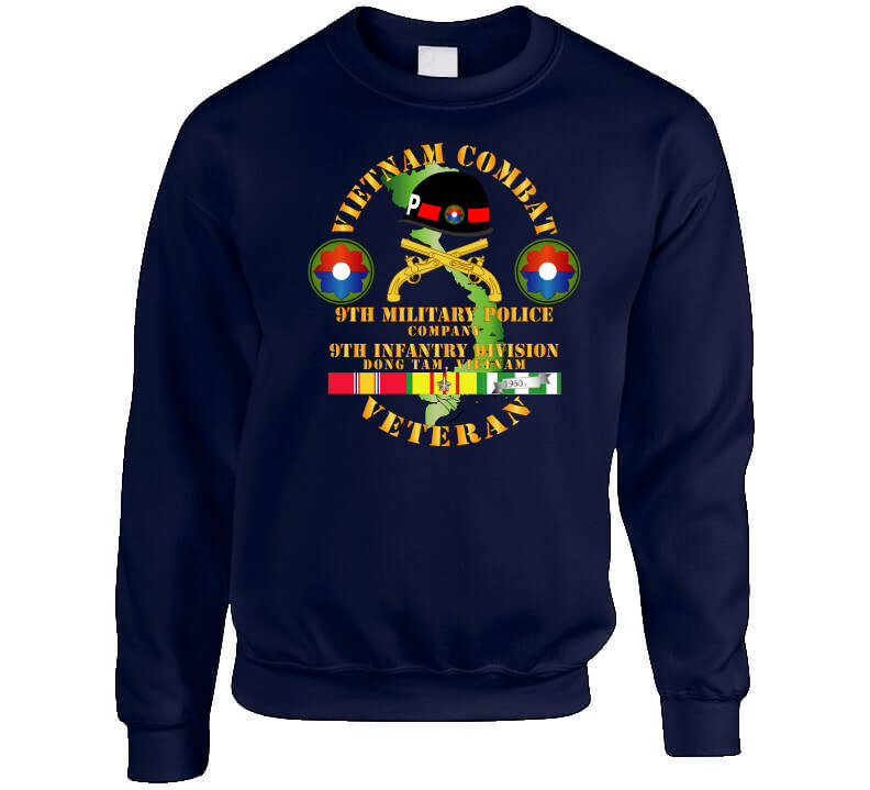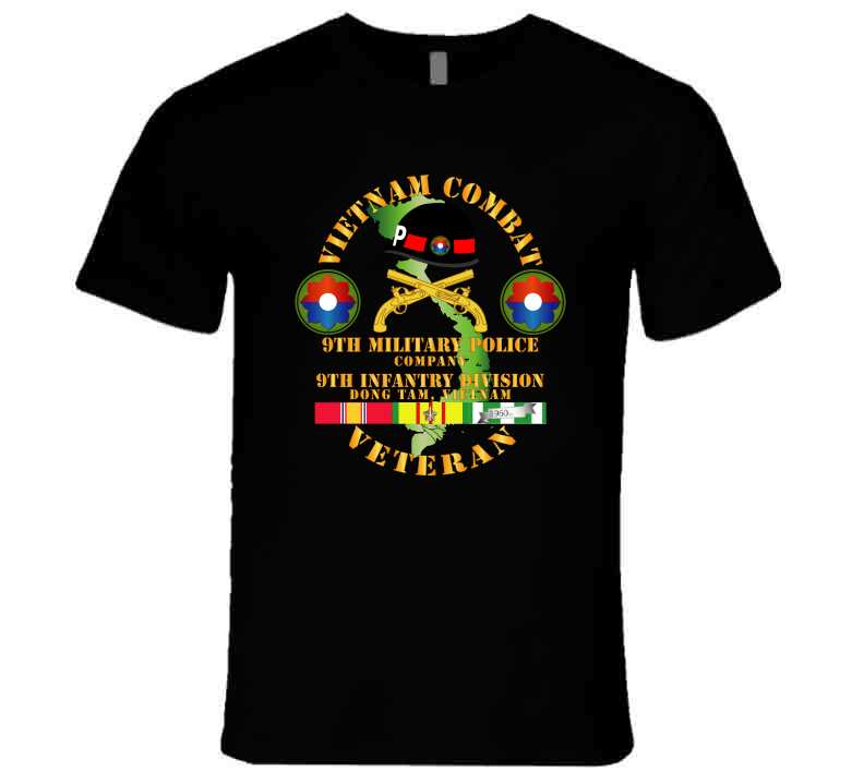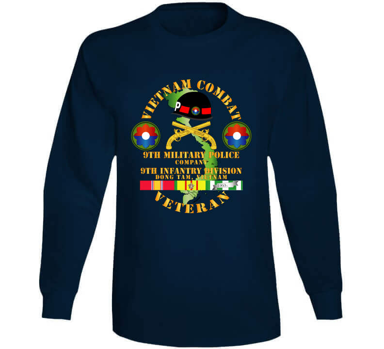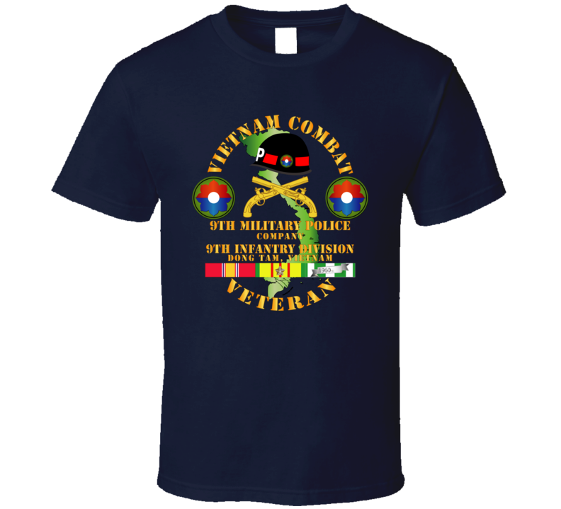 Army - Vietnam Combat Veteran W 9th Military Police Co W 9th Id T Shirt, Various, Classic, Navy