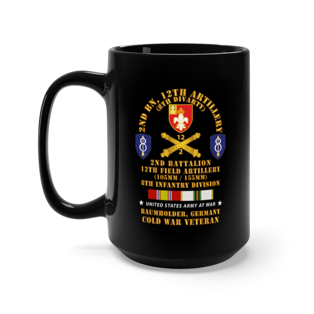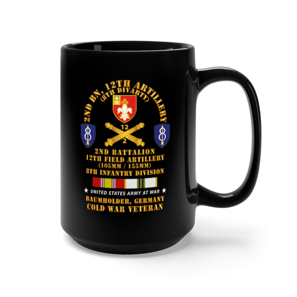 Black Mug 15oz - Army - 2nd Bn 12th Artillery - 105-155mm - 8th ID - Baumholder Germany w COLD SVC