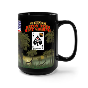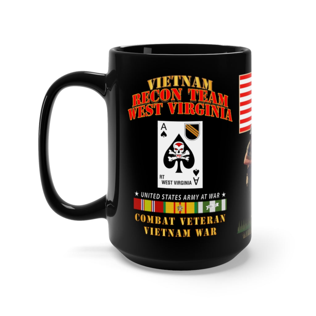Black Mug 15oz - Army - Special Forces - Recon Team - West Virginia with Vietnam War Rib