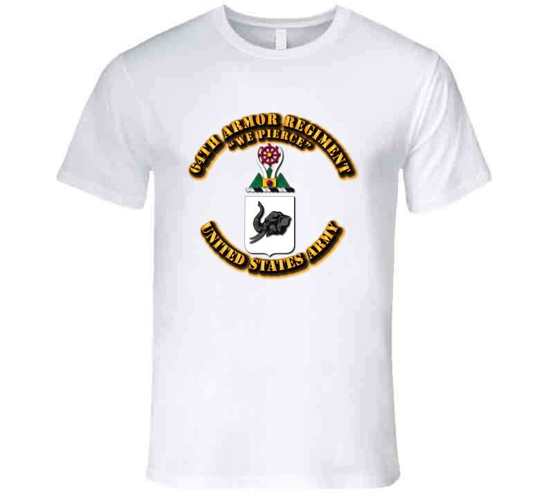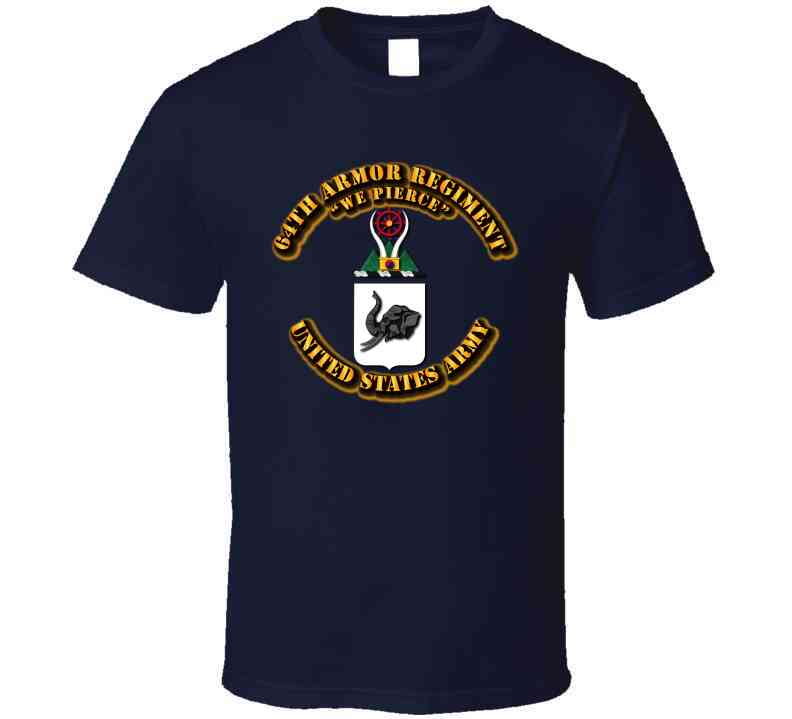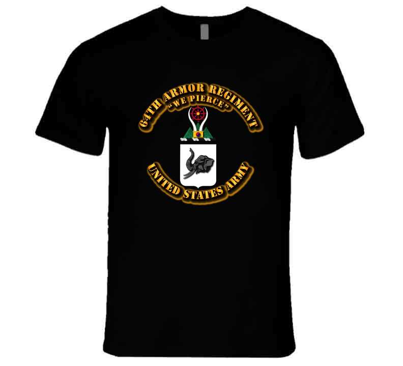 The 64th Armor Regiment's insignia is a black African elephant with two white tusks.