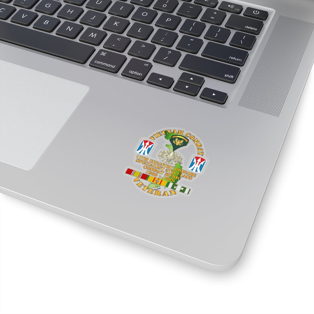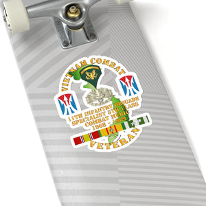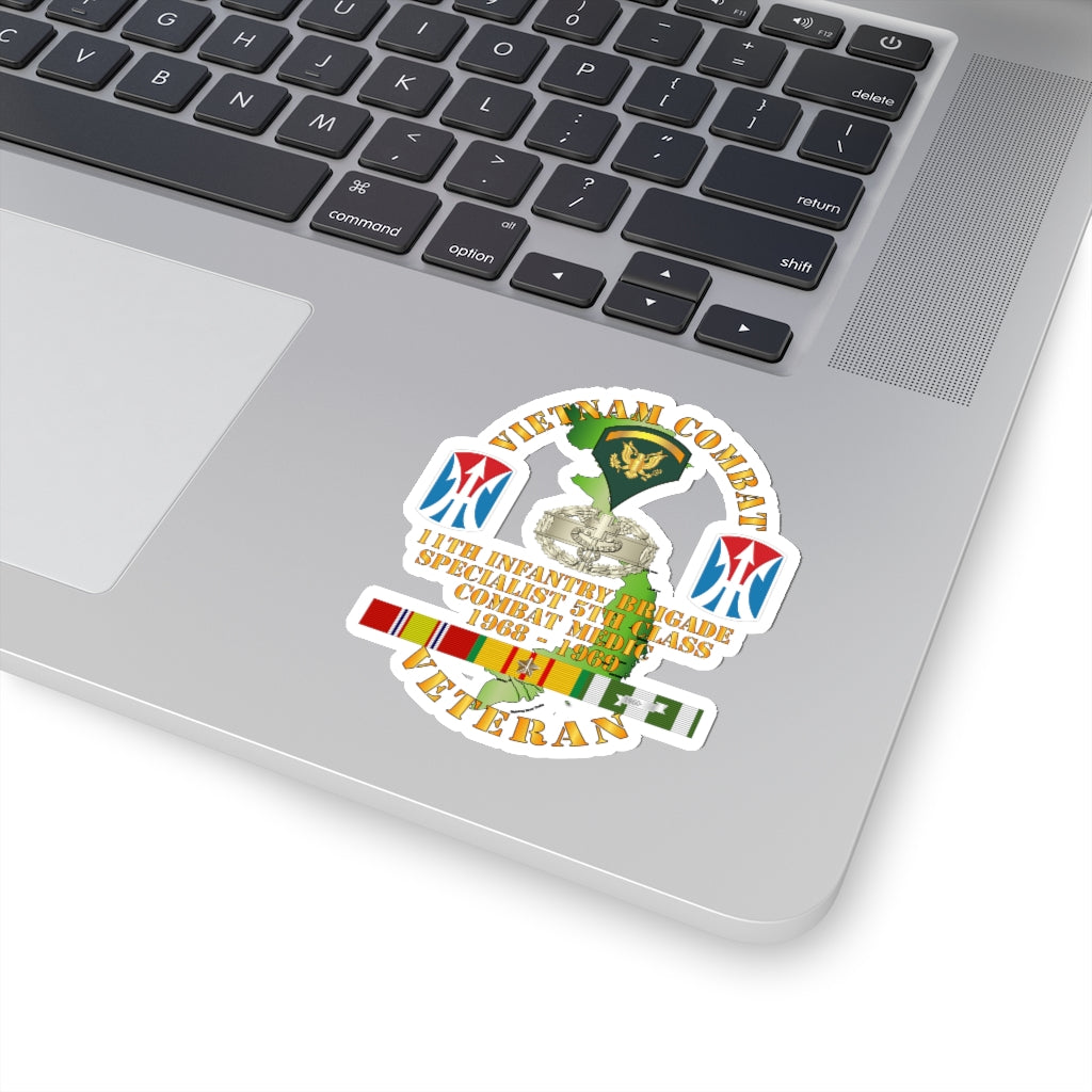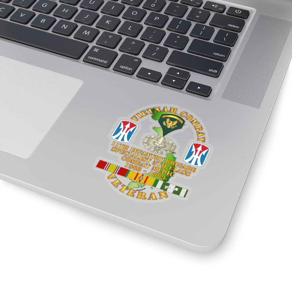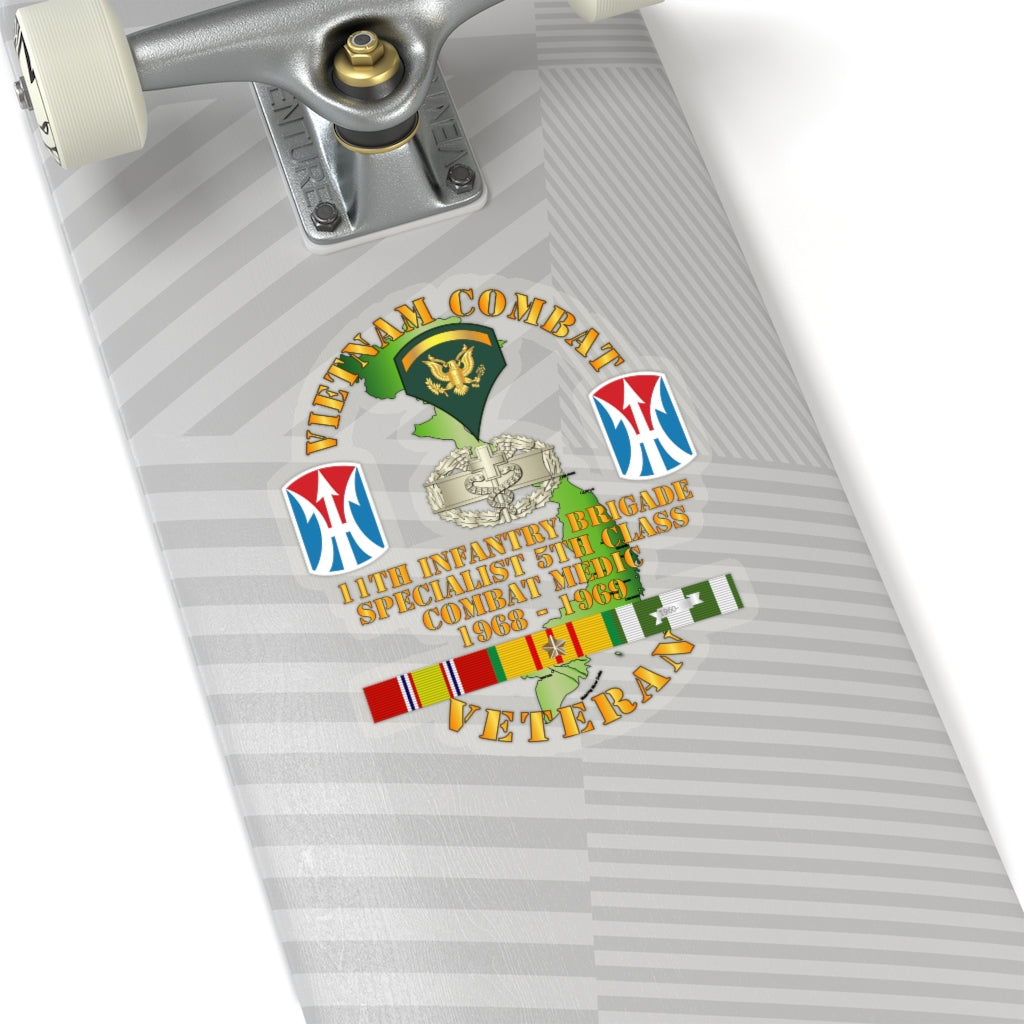 Kiss-Cut Stickers - Army - Vietnam Combat Vet - 11th Inf Bde SSI - Spec 5 - Cbt Medic - 1968-69 VN Svc X300