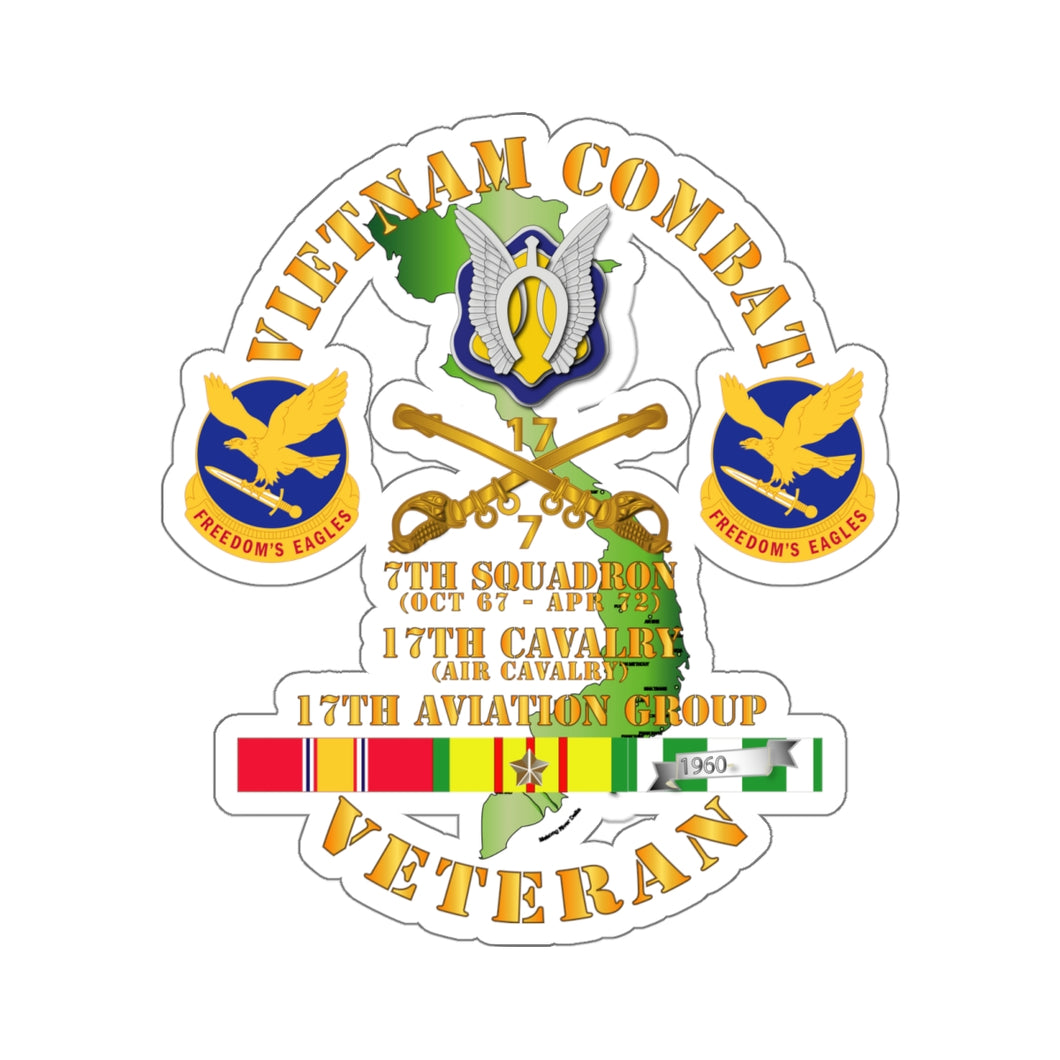 Kiss-Cut Stickers - Vietnam Combat Cavalry Vet w 7th Squadron - 17th Air Cav - 17th Aviation Group DUI w SVC