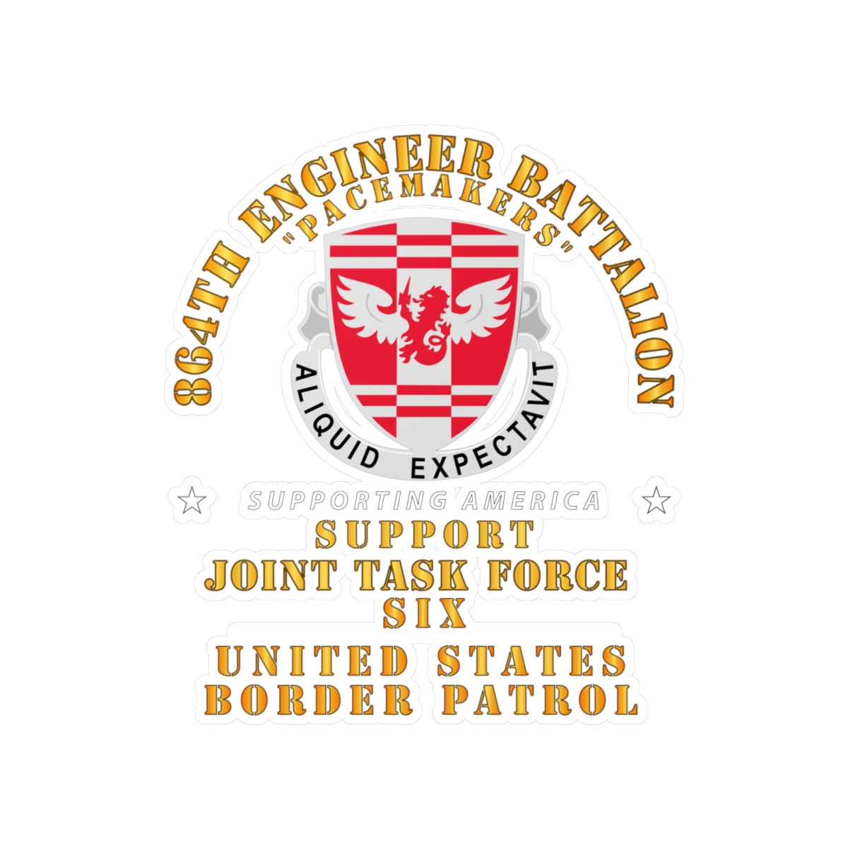 Kiss-Cut Vinyl Decals - Army - 864th Eng Bn -  JTF6 Supporting America